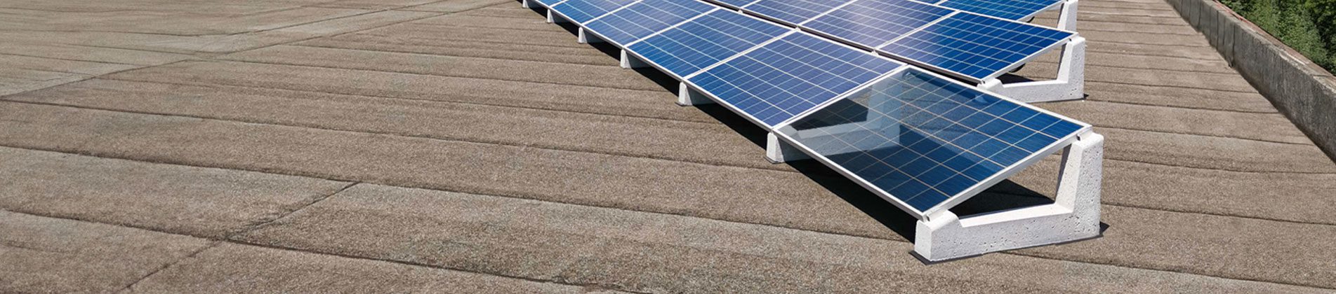 Mit den Ballastelementen von Sun Ballast® kann man eine Photovoltaikanlage installieren und gleichzeitig den tragenden Untergrund vor Beschädigungen oder Verletzungen bewahren, da die Strukturen nicht am Boden befestigt werden müssen und spezielle Unterlagen zum Einsatz kommen, die die Eigenschaften des Daches unverändert erhalten.