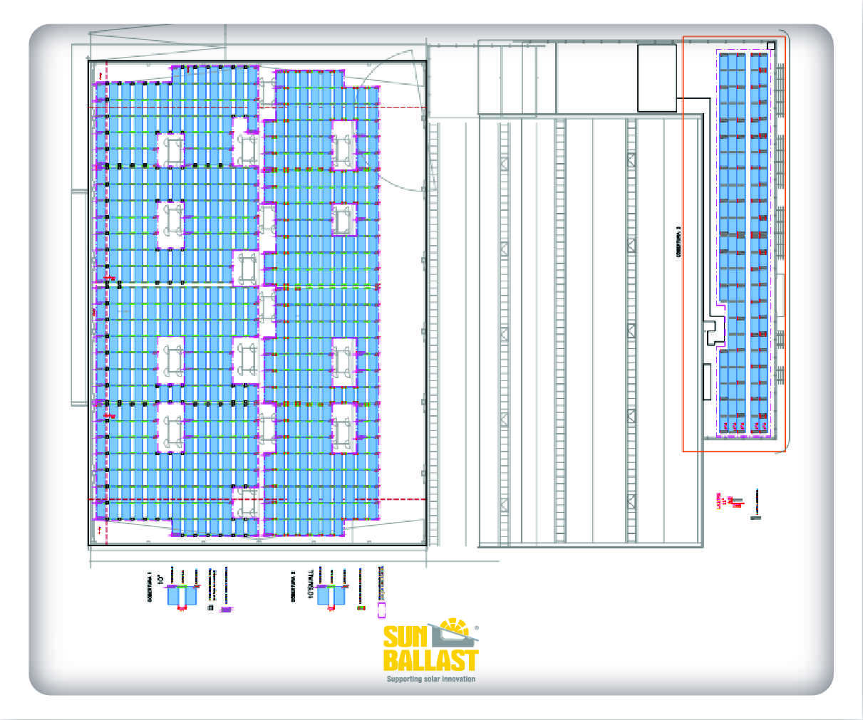 Unsere technische Abteilung war wesentlich an den Dimensionierungsberechnungen, der Analyse des Dachtyps und der anschließende Auswahl der passenden Struktur von Sun Ballast beteiligt und somit in der Lage, den vom Kunden geäußerten Gebäudeanforderungen bestmöglich gerecht zu werden.