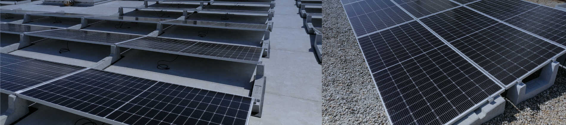 Im größten Teil der Anlage erfolgte die Montage mit den Ballastelementen des Systems Connect von Sun Ballast, einem Träger, der hervorragende Windbeständigkeit und geringe Dachbelastung vereint. Seine besondere Struktur aus drei Beton-Ballastelementen ermöglicht eine Gitterkonfiguration der Photovoltaikmodule. Die miteinander verbundenen Paneele sind äußerst stabil und verteilen das Gewicht der Struktur gleichmäßig, ohne dass eine Stelle mehr als die andere belastet wird.