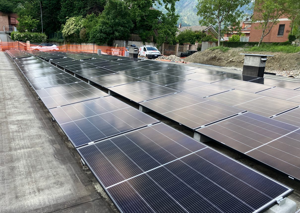 Diese 35-kW-Anlage wurde in der Provinz Turin auf einer ebenen Dachfläche errichtet. Dank der Sun Ballast Photovoltaik-Strukturen konnte die Installation problemlos und unter Einhaltung der Lieferzeiten durchgeführt werden.