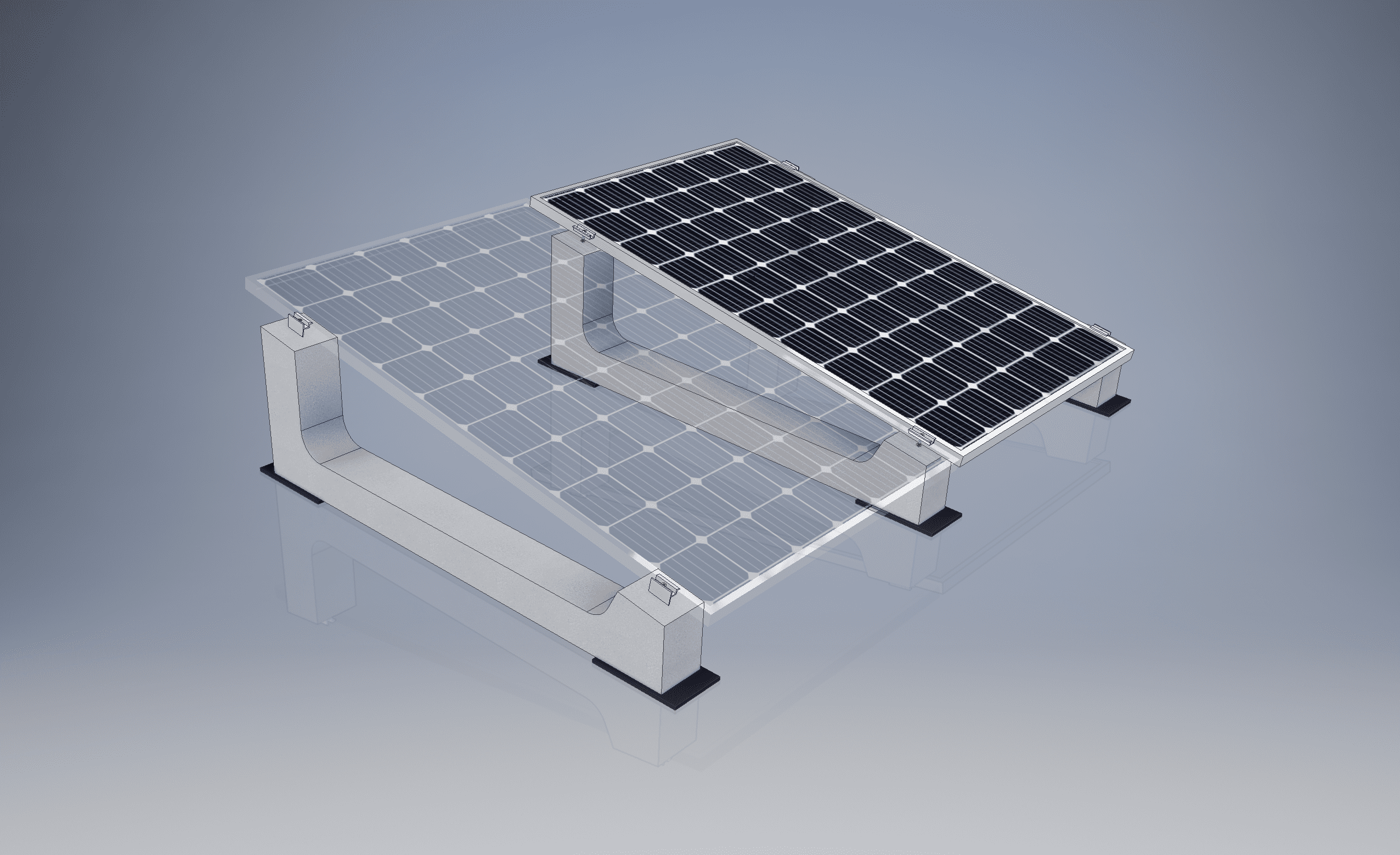 10°. L Ballast auf Sun Ballast Linie ermöglicht eine Neigung von 10° und hat ein Gewicht von 70 kg. Es ermöglicht die vertikale Verlegung von 72 Zellen.