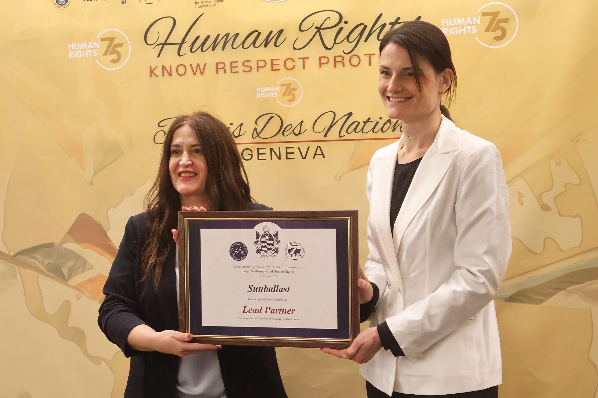 Dieses Jahr – während der Sonderkonferenz am 7. und 8. Dezember im UN-Hauptquartier in Genf anlässlich des 75. Weltmenschenrechtstages – hatte Lisa Calamai, Qualitätsdirektorin von Sun Ballast, die Gelegenheit, das Unternehmen zu vertreten und die Unterstützung für den Verband zu erneuern , um einem Publikum aus Tausenden von Unternehmern, öffentlichen Einrichtungen, Diplomaten und NGOs alle Grundsätze zu vermitteln, auf denen das bürgerschaftliche Engagement und die Unternehmensethik von Sun Ballast basieren.