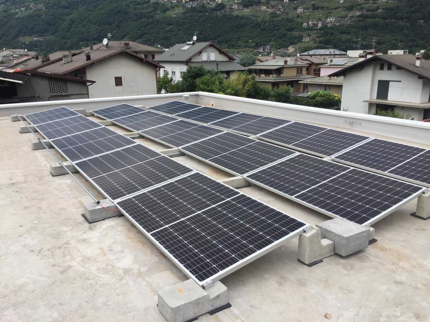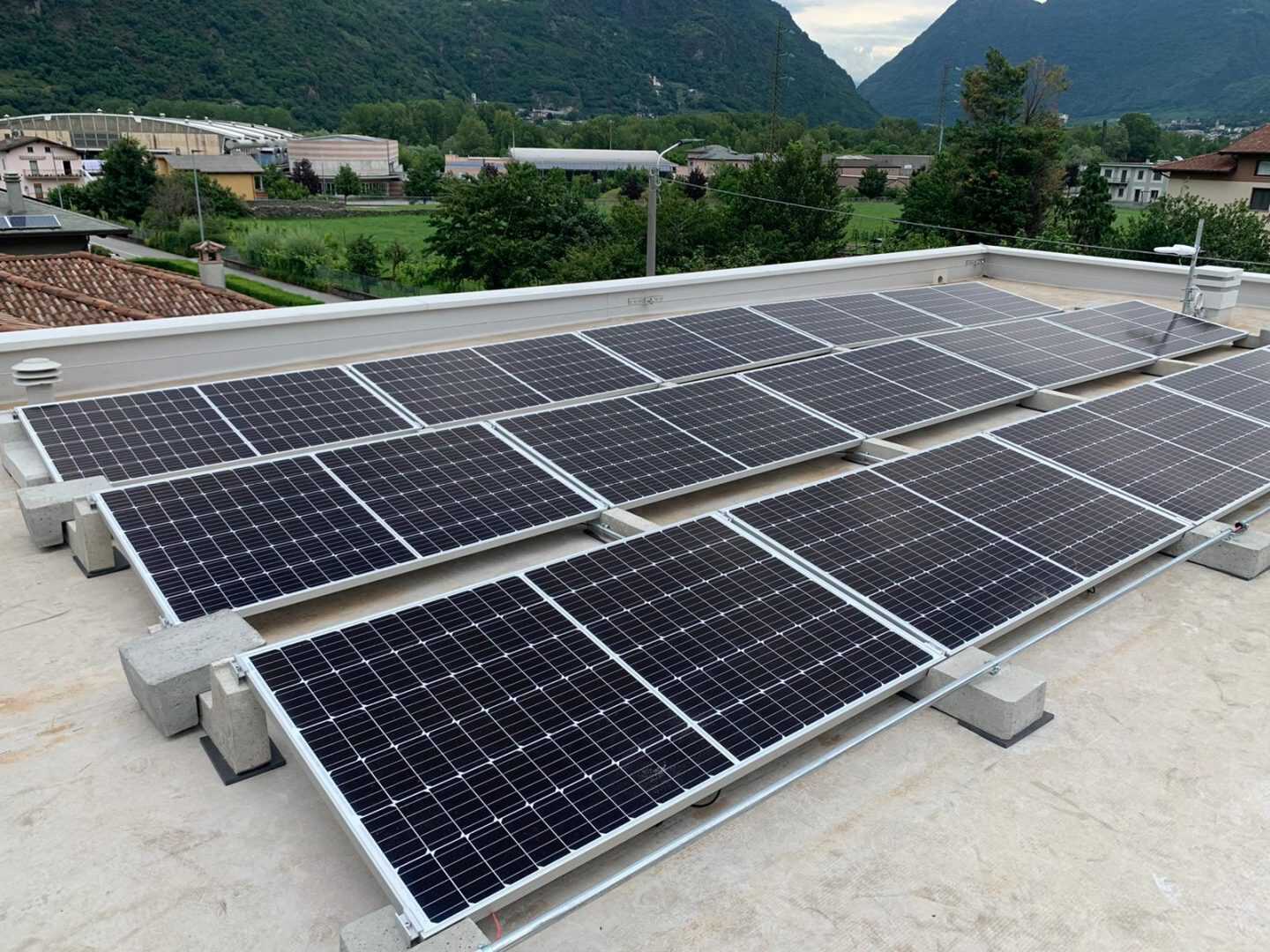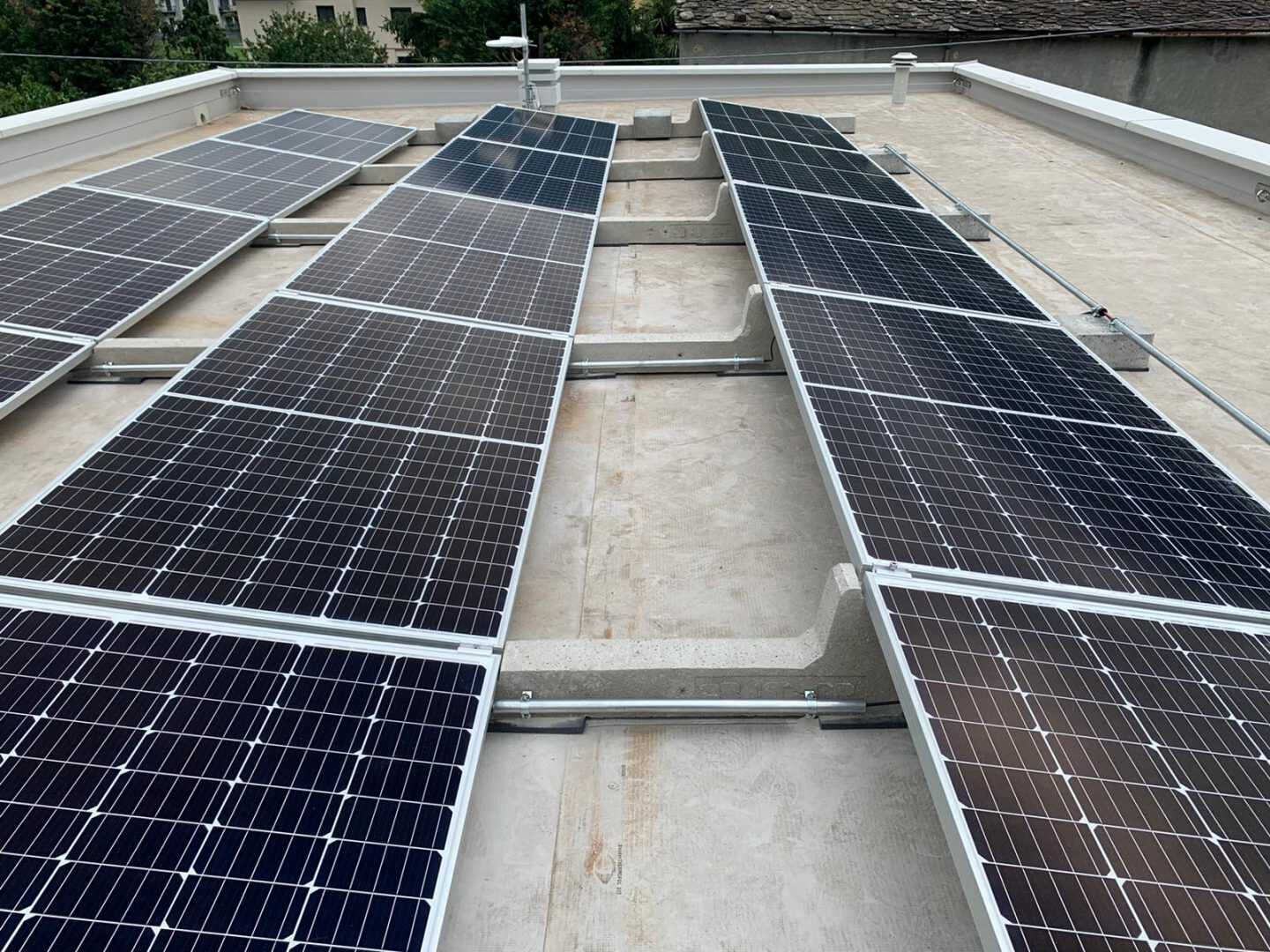 Auch eine kleine Anlage verdient die Stabilität und Stärke einer großen Anlage. Das Connect Sun Ballast System ist nicht nur solide und windbeständig, sondern hat auch den Vorteil, dass es das Dach nur wenig belastet. Aus diesem Grund hat sich unser Kunde Abclog srl für eine Anlage mit einer Gesamtleistung von 4,95 kWp an erneuerbarer Energie entschieden.