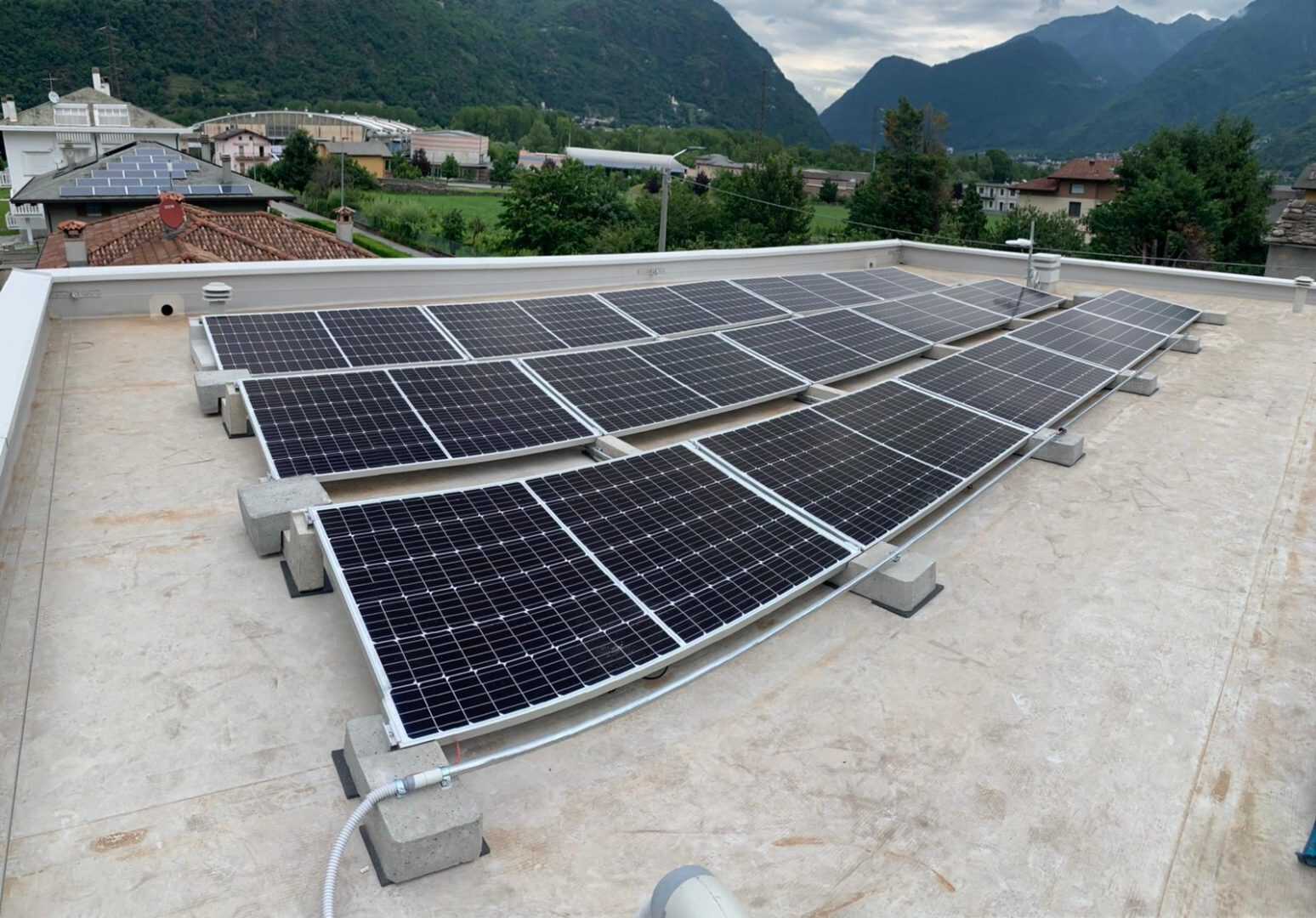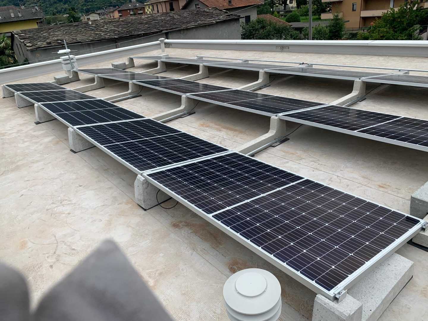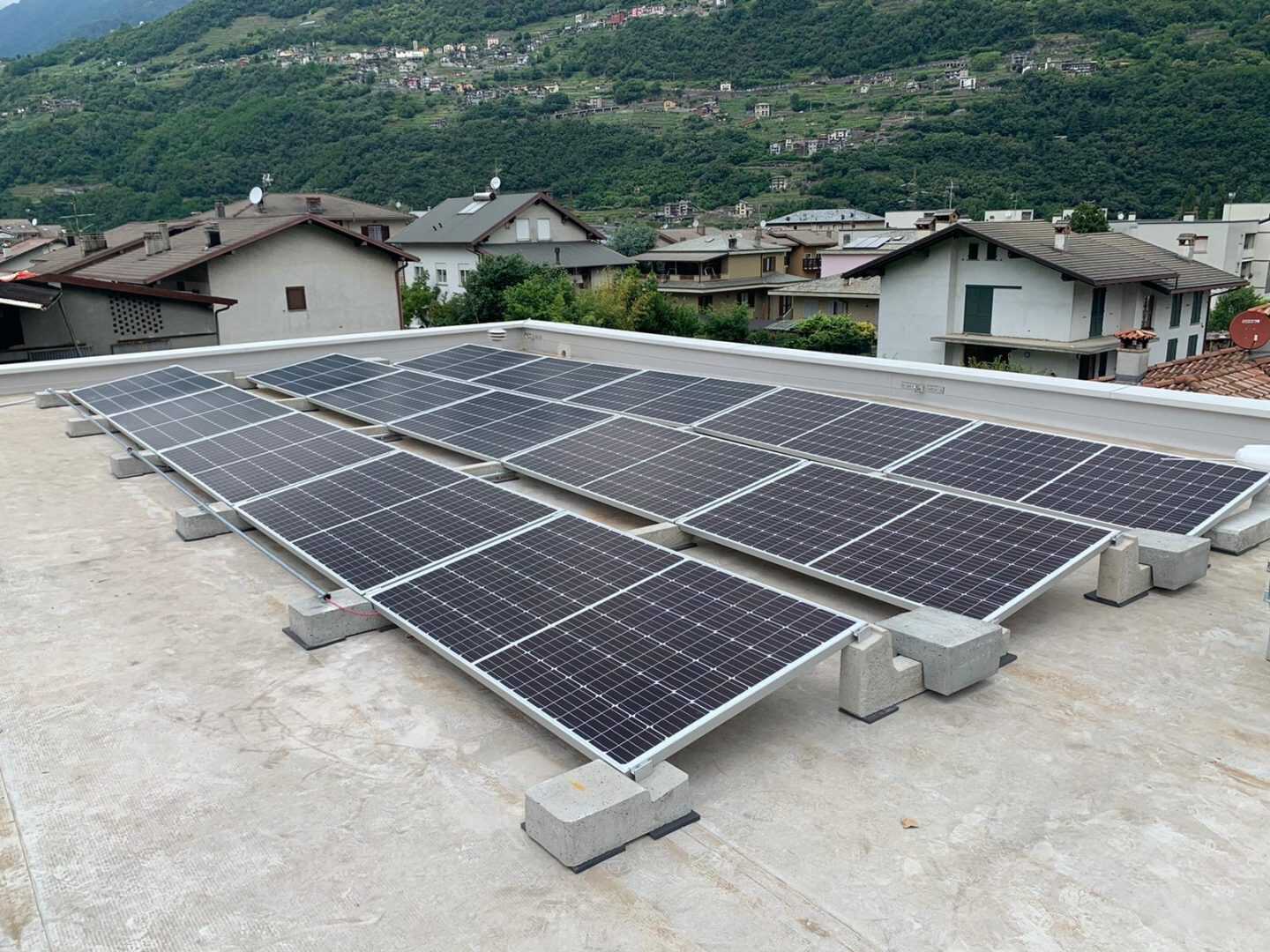 Auch eine kleine Anlage verdient die Stabilität und Stärke einer großen Anlage. Das Connect Sun Ballast System ist nicht nur solide und windbeständig, sondern hat auch den Vorteil, dass es das Dach nur wenig belastet. Aus diesem Grund hat sich unser Kunde Abclog srl für eine Anlage mit einer Gesamtleistung von 4,95 kWp an erneuerbarer Energie entschieden.