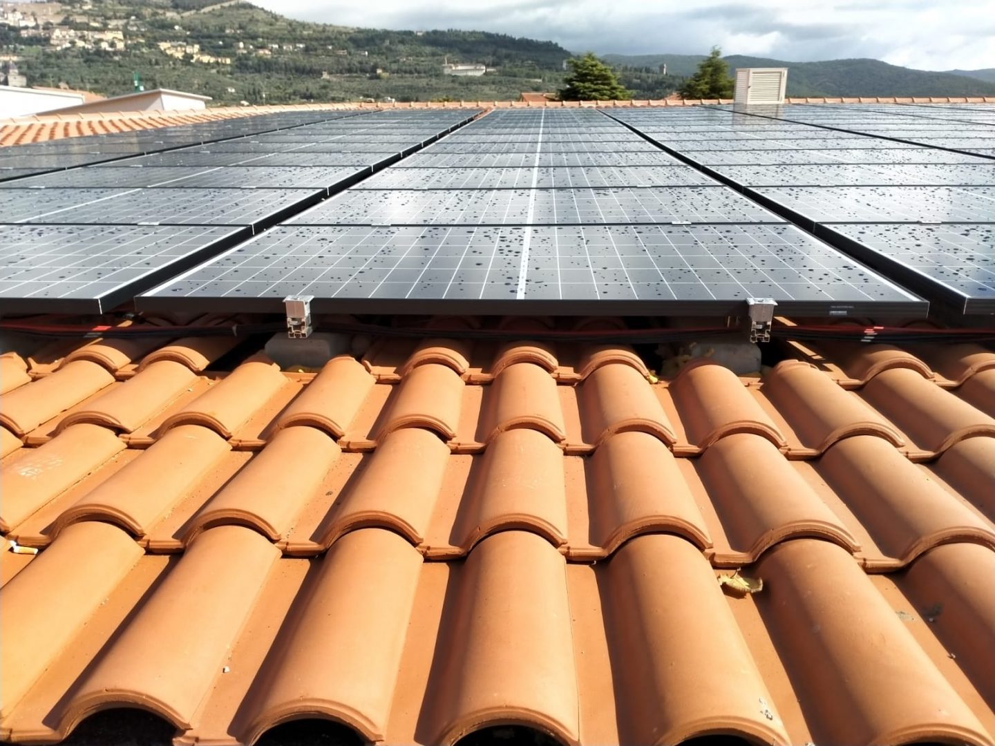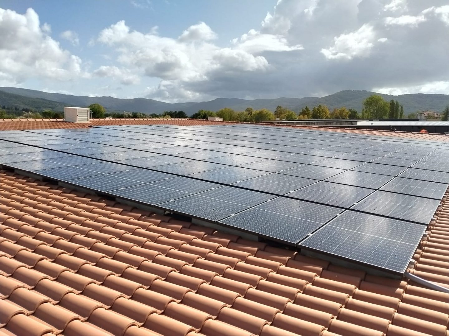 Mit ein wenig Erfindungsreichtum und Kreativität ist es möglich, den Sun Ballast auch auf Oberflächen zu installieren, auf denen Fliesen vorhanden sind, beispielsweise bei der hervorragenden Arbeit von SIE Engineering, die durch die Wahl eines Ballastes mit einer Neigung von 0 ° ein System mit 46,64 kWp installiert hat Photovoltaikanlage auf leicht geneigtem Dach.