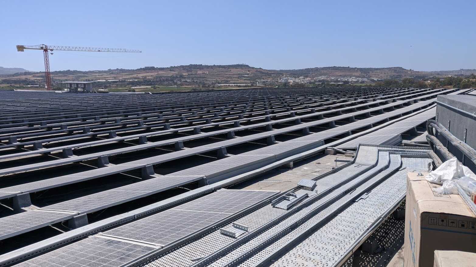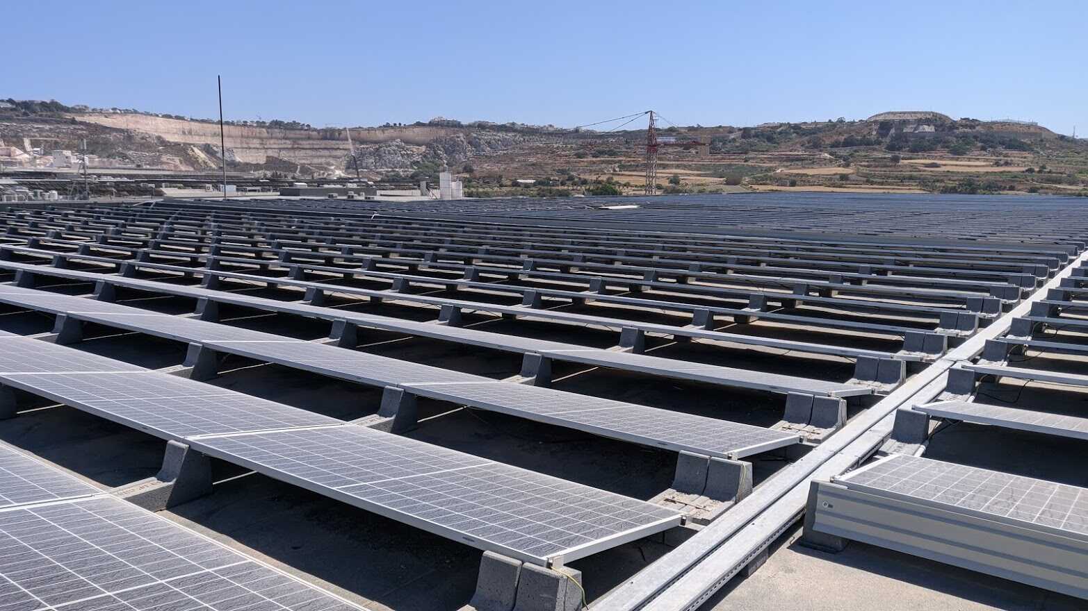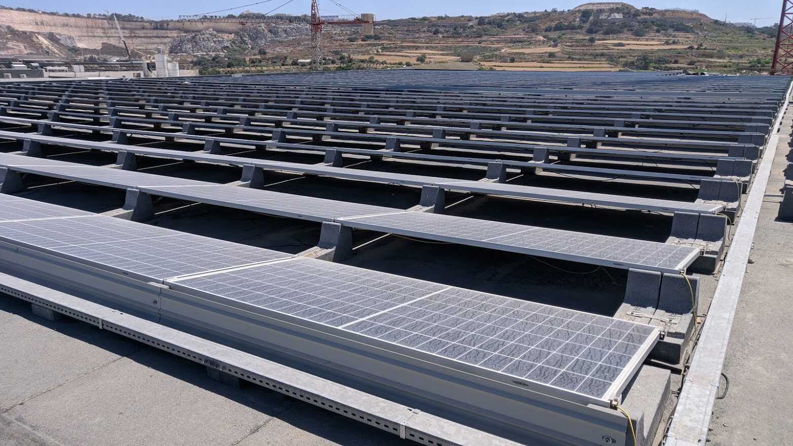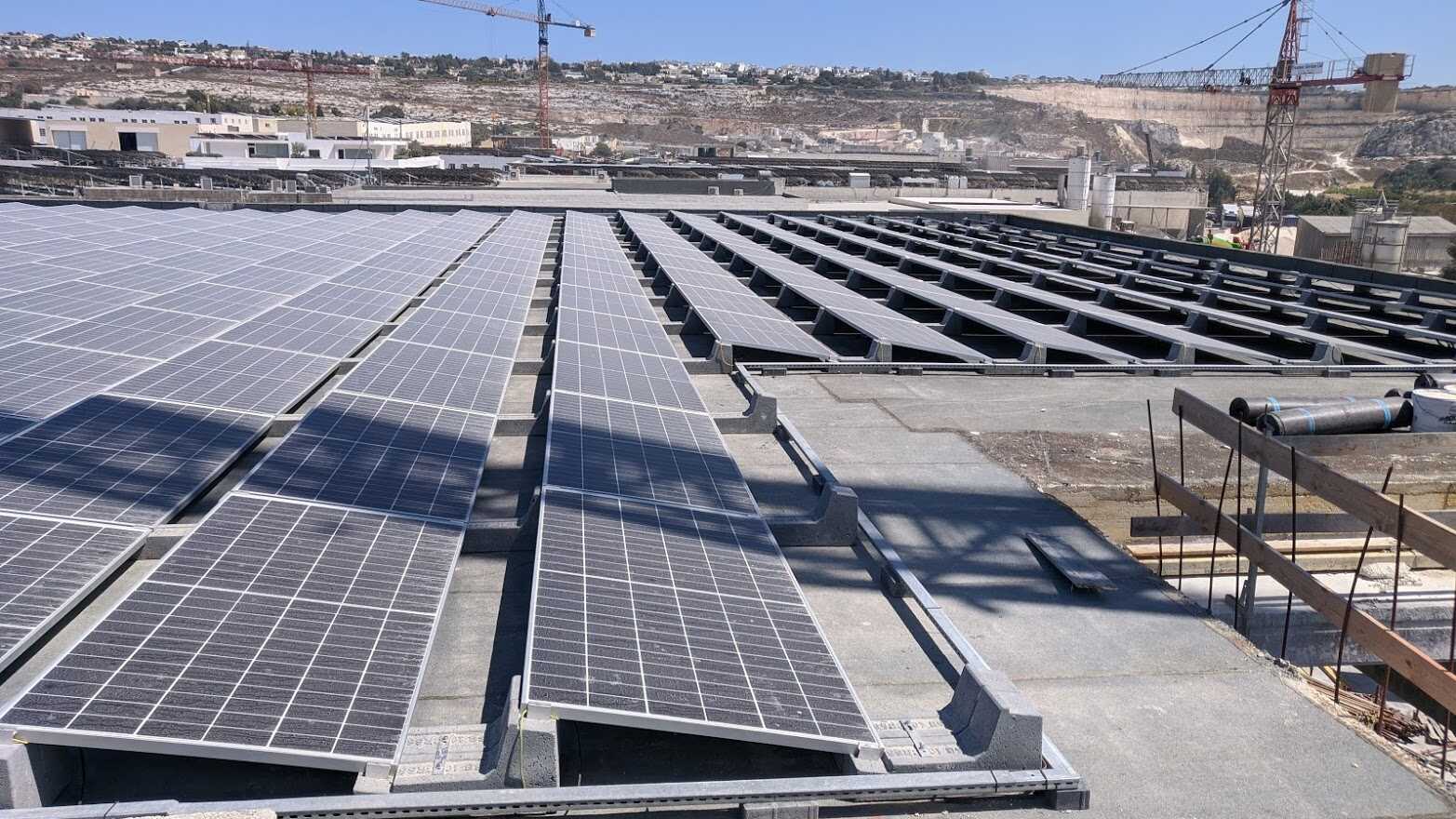 Eine Mammut-Photovoltaikanlage mit einer Leistung von über 1,2 MW, die das Connect Sun Ballast-System als Stützstruktur für die Solarmodule verwendet, die von unserem Kunden Electrofix in Malta in einem im Bau befindlichen Industrielager gebaut wurden. Unsere technische Abteilung hat das System entworfen, indem sie auch die der Da Berechnungchlast pro Quadratmeter und den Windwiderstand berechnet hat. Die Wahl auf eine Neigung von 10° unter Verwendung von Windschutzgehäusen, die in der letzten Reihe installiert waren, um die Beständigkeit gegenüber atmosphärischen Stoffen weiter zu erhöhen. Für die Installation müssen die Ballast nicht auf dem Dach befestigt werden. Dies spart im Vergleich zu herkömmlichen Strukturen bis zu 70% Zeit.