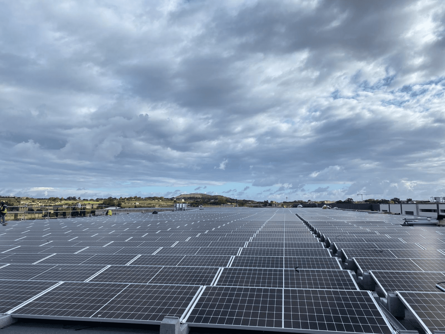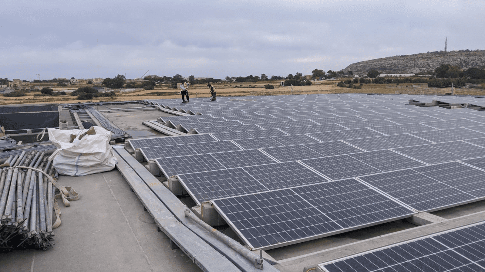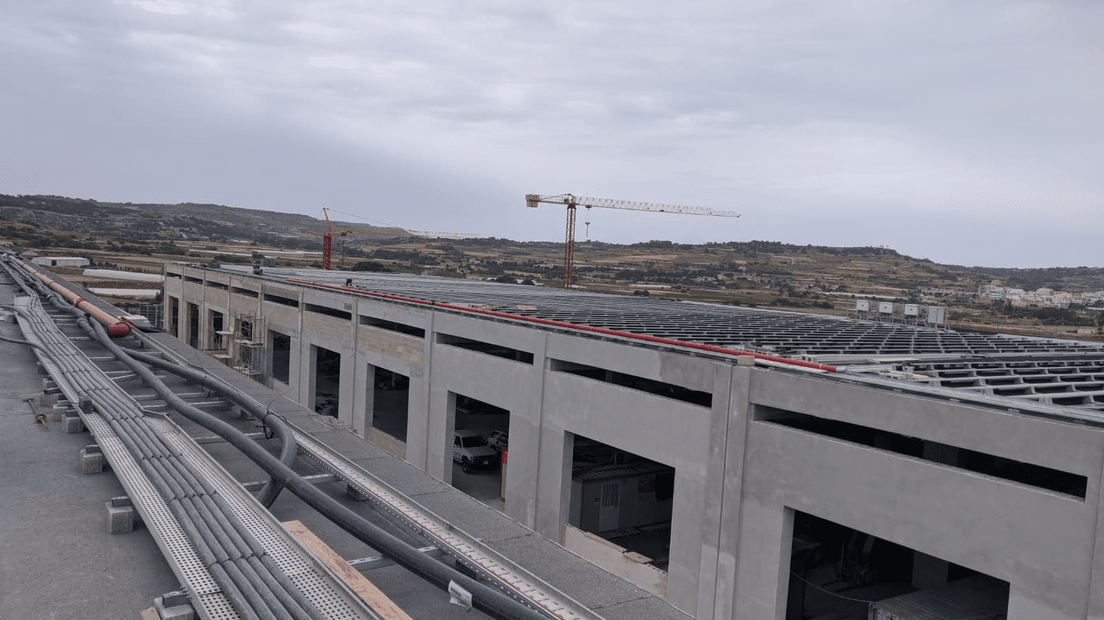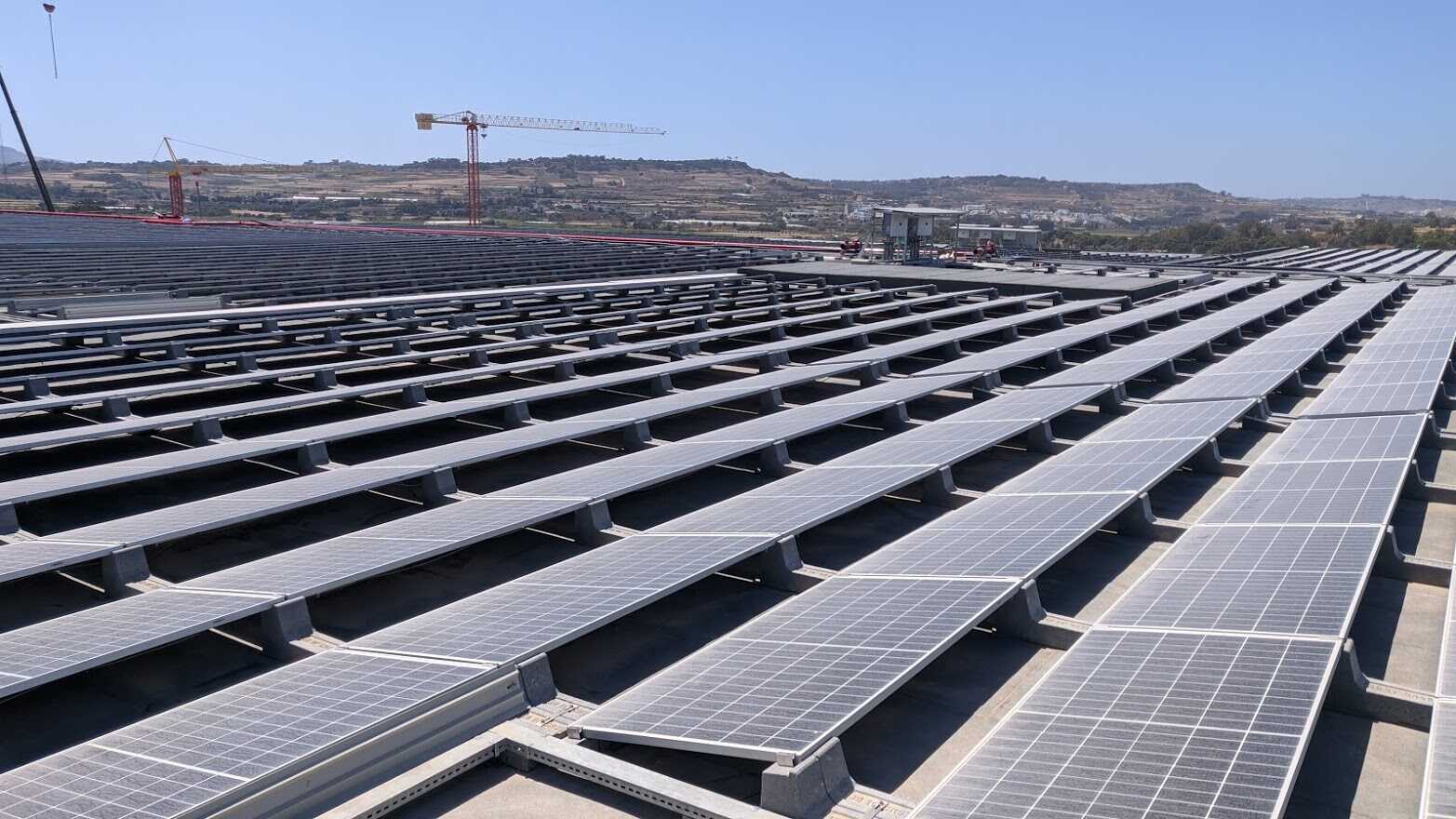 Eine Mammut-Photovoltaikanlage mit einer Leistung von über 1,2 MW, die das Connect Sun Ballast-System als Stützstruktur für die Solarmodule verwendet, die von unserem Kunden Electrofix in Malta in einem im Bau befindlichen Industrielager gebaut wurden. Unsere technische Abteilung hat das System entworfen, indem sie auch die der Da Berechnungchlast pro Quadratmeter und den Windwiderstand berechnet hat. Die Wahl auf eine Neigung von 10° unter Verwendung von Windschutzgehäusen, die in der letzten Reihe installiert waren, um die Beständigkeit gegenüber atmosphärischen Stoffen weiter zu erhöhen. Für die Installation müssen die Ballast nicht auf dem Dach befestigt werden. Dies spart im Vergleich zu herkömmlichen Strukturen bis zu 70% Zeit.