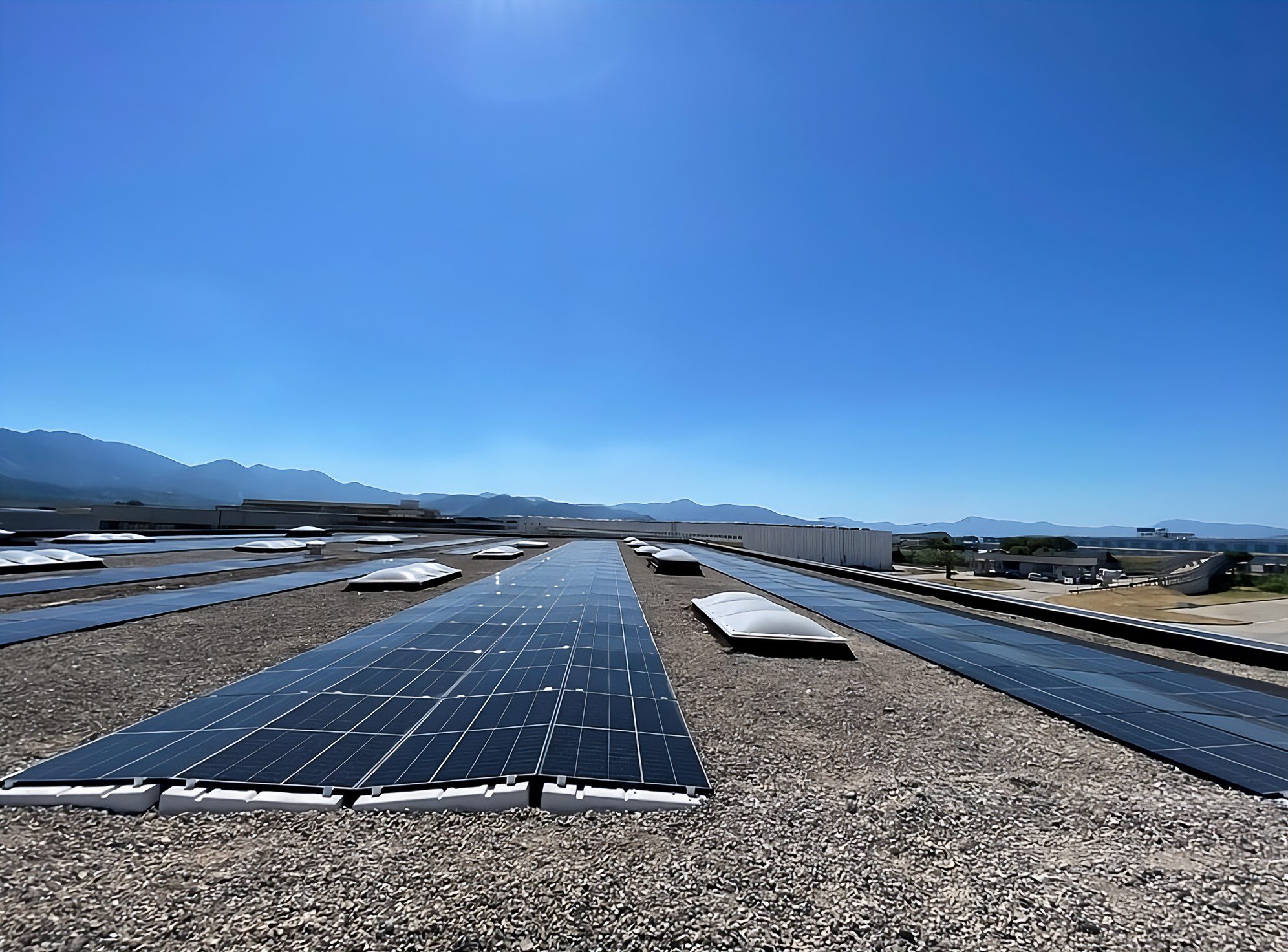 Wenn es darum geht, den ganzen Tag über eine hohe und konstante Produktion sicherzustellen, ist das Ost-West-System von Sun Ballast die ideale Lösung: das von Exergia S.R.L. gebaute System. Die Leistung dieses Schuppens in Polvica di Nola (NA) übersteigt 229 kWp, und dank des Ost-West-3°K-Systems ist die erzeugte Energie nicht nur reichlich vorhanden, sondern auch gut verteilt. Tatsächlich sind die Photovoltaikmodule in zwei verschiedene Richtungen ausgerichtet und die Sonneneinstrahlung bleibt von Sonnenaufgang bis Sonnenuntergang konstant.