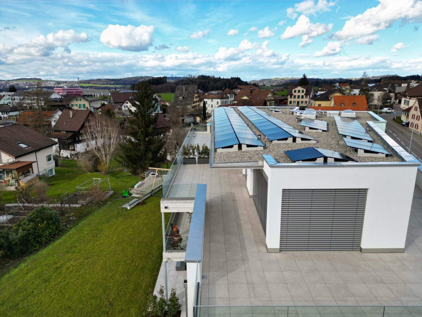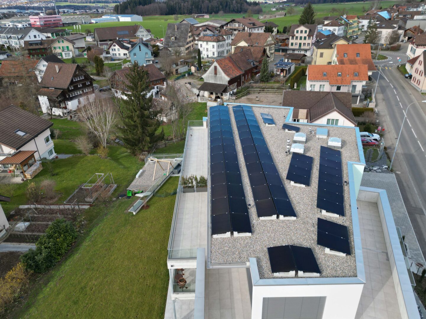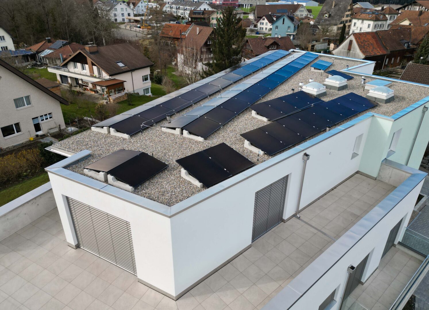 Diese von unserem Kunden Fyrosol AG Solar in Lütisburg (Schweiz) installierte Photovoltaikanlage wurde auf dem flachen Kiesdach eines neuen Wohnhauses errichtet und dank der Sun Ballast Betonballaste erfolgte die Installation einfach, schnell und professionell. Die Photovoltaik-Panel-Strukturen von Sun Ballast benötigen keine Befestigungslöcher und können schnell auf jeder Art von Oberfläche platziert werden.
