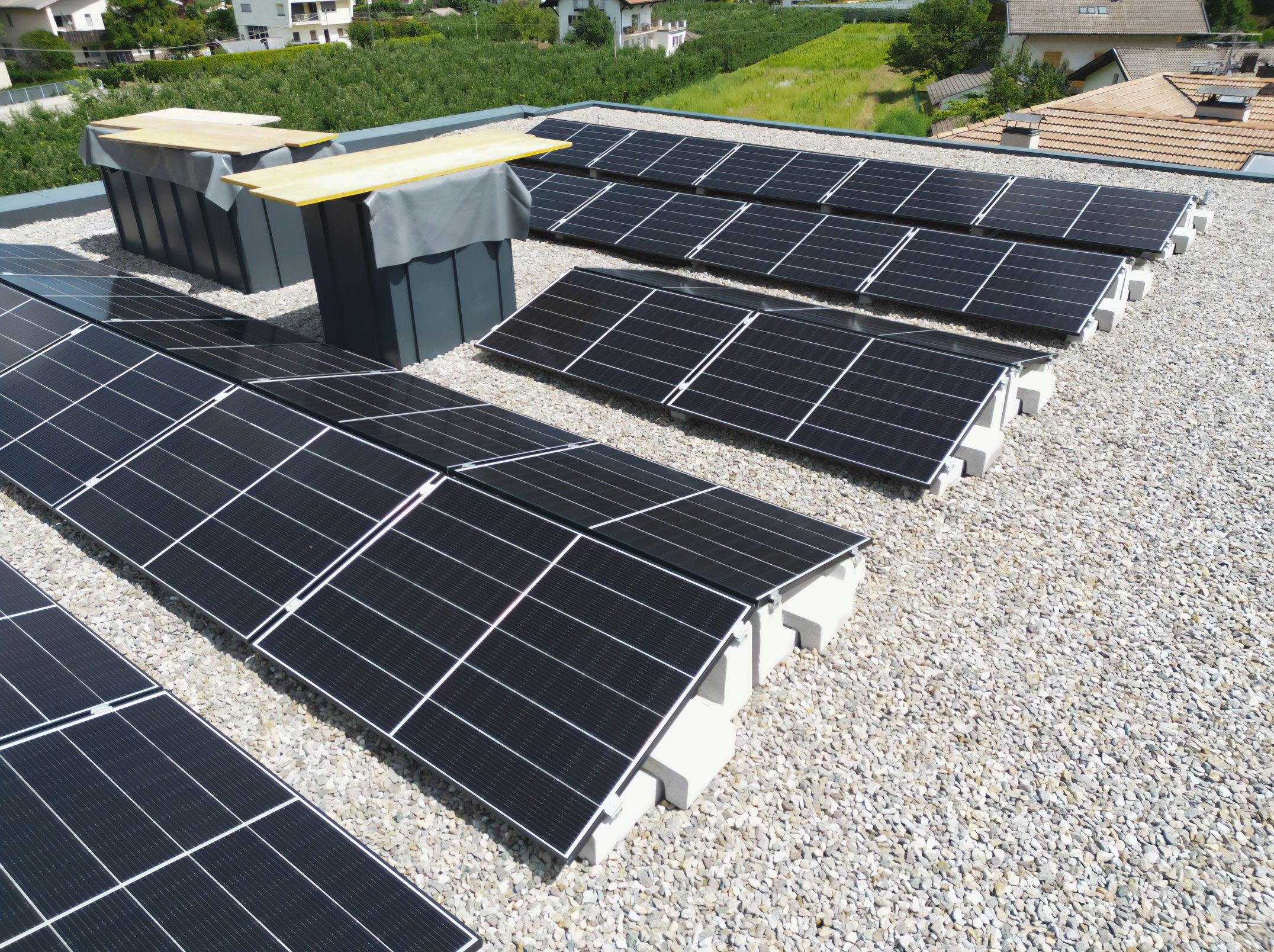 Tatsächlich ermöglicht die Verlängerung der Belichtungsdauer, die Produktionsdefizite auszugleichen, die sich aus einer begrenzten Anzahl von Lichtstunden ergeben – wie es in vielen nordeuropäischen Ländern der Fall ist – oder aus der Verschattung durch Bäume, andere Gebäude oder Bergreliefs. Dies ist bei der auf dem Foto sichtbaren Anlage der Fall, die von unserem Kunden Ies Energy in Lana, einer kleinen Stadt in der Provinz Bozen, gebaut wurde: Die Installation des Ballasts erfolgte schnell und einfach, indem die Strukturen direkt auf dem Kiesbelag platziert wurden und sicherzustellen, dass die Photovoltaikanlage ein Höchstmaß an Windwiderstand, Effizienz und Zuverlässigkeit aufweist.