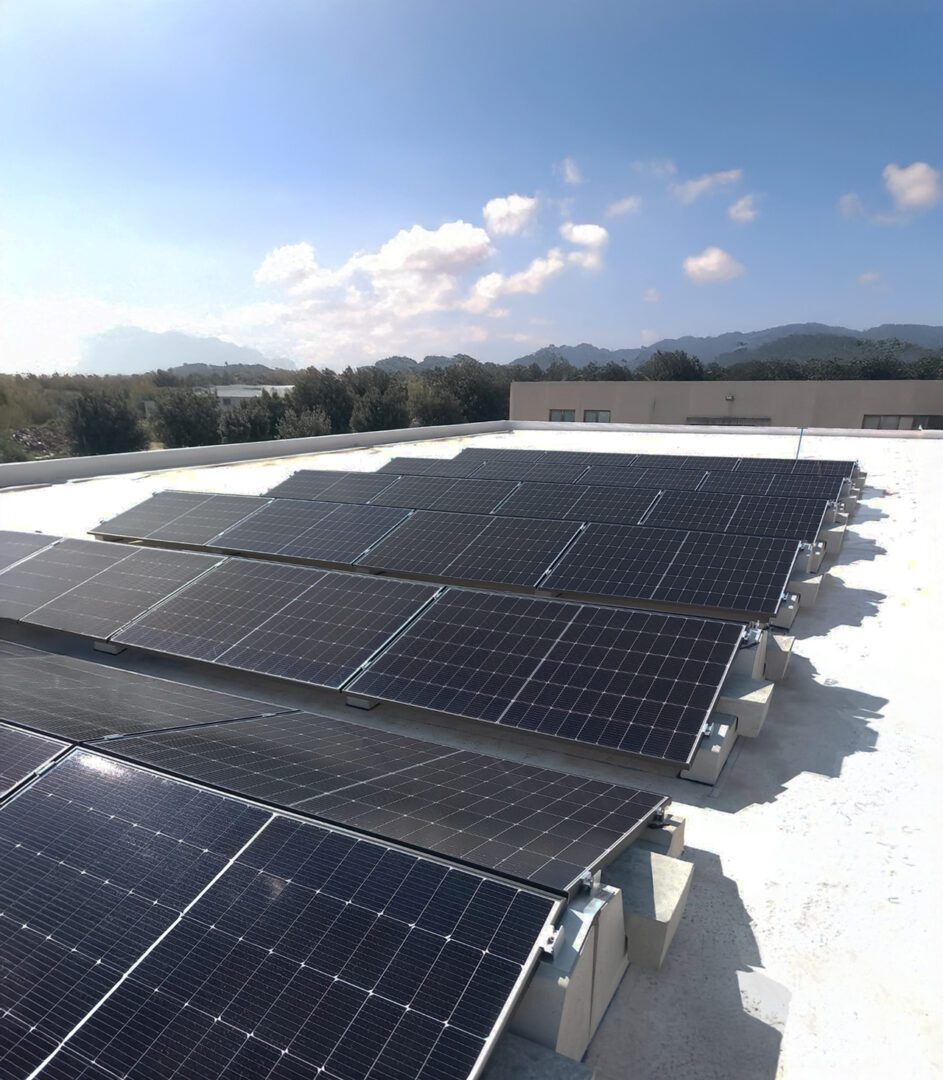 Sun Ballast Photovoltaik-Strukturen werden einfach und ohne Bohren auf dem Gebäudedach platziert und können auf jedem Material wie Biyumrn, Pflaster, Gründächern und Kies angebracht werden.