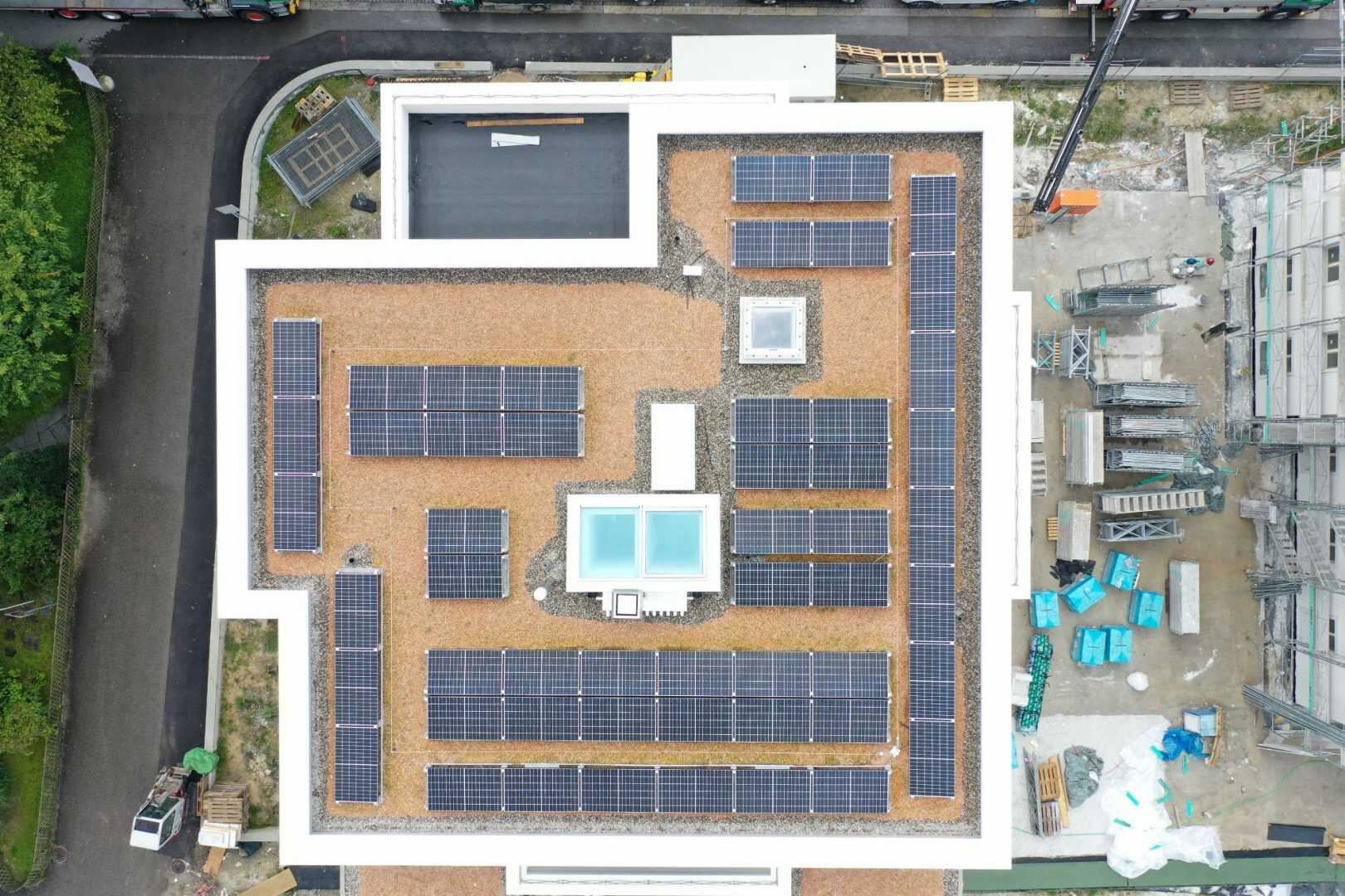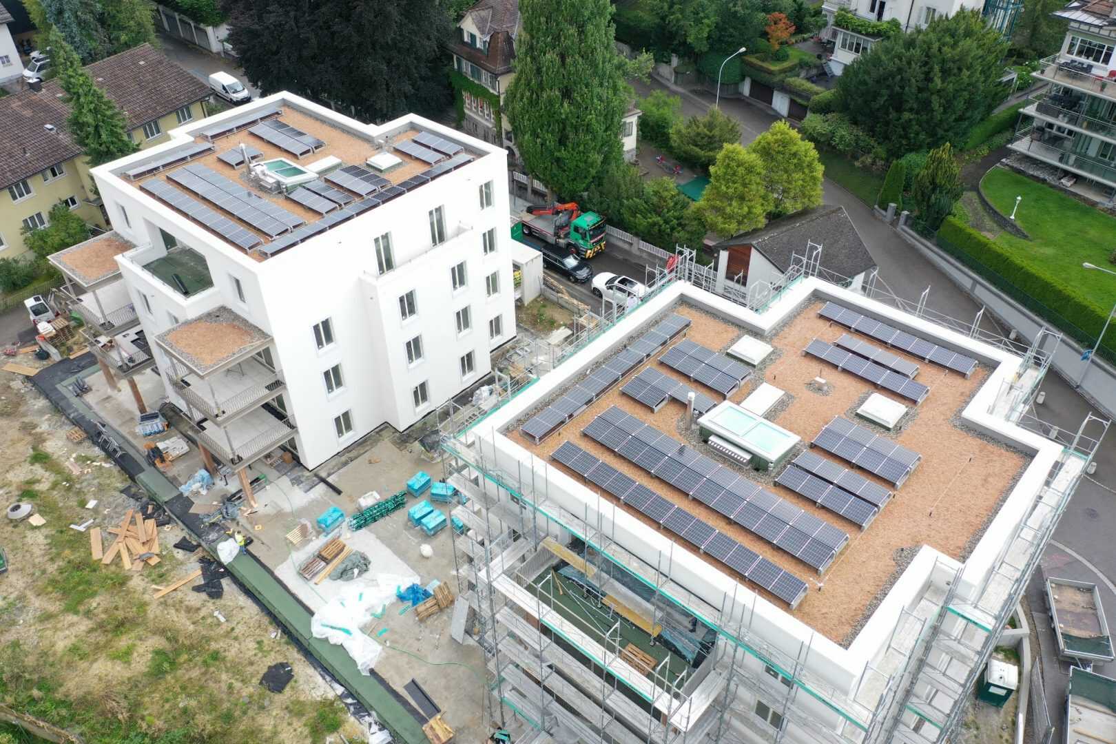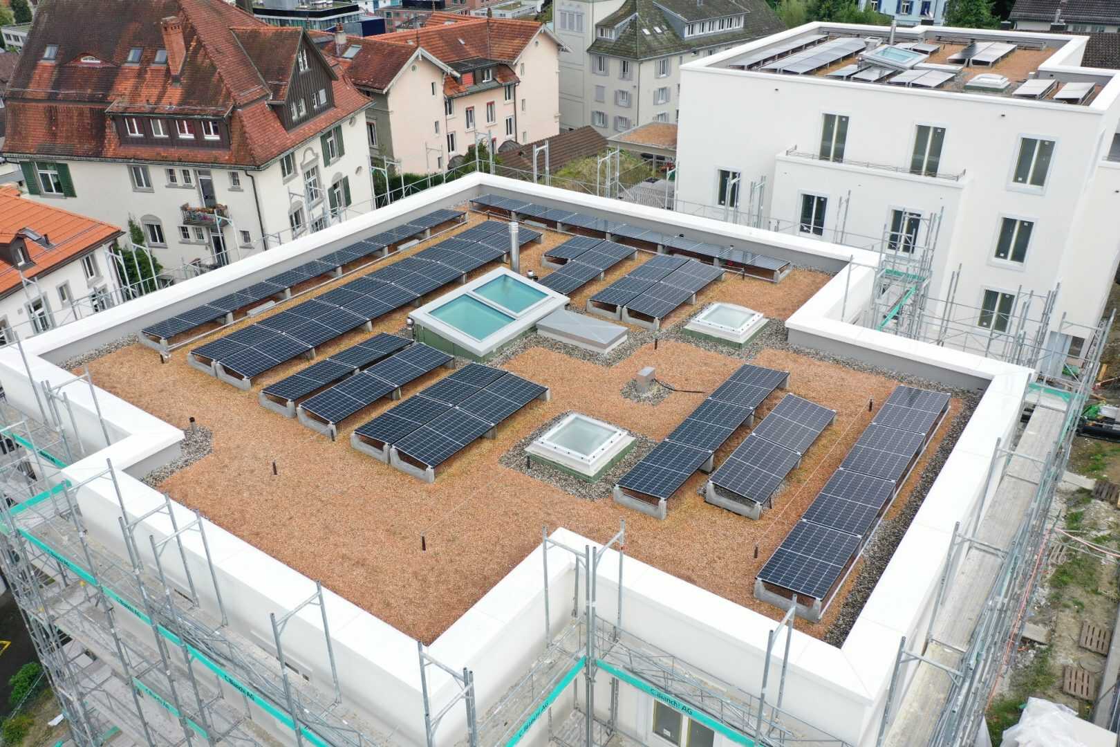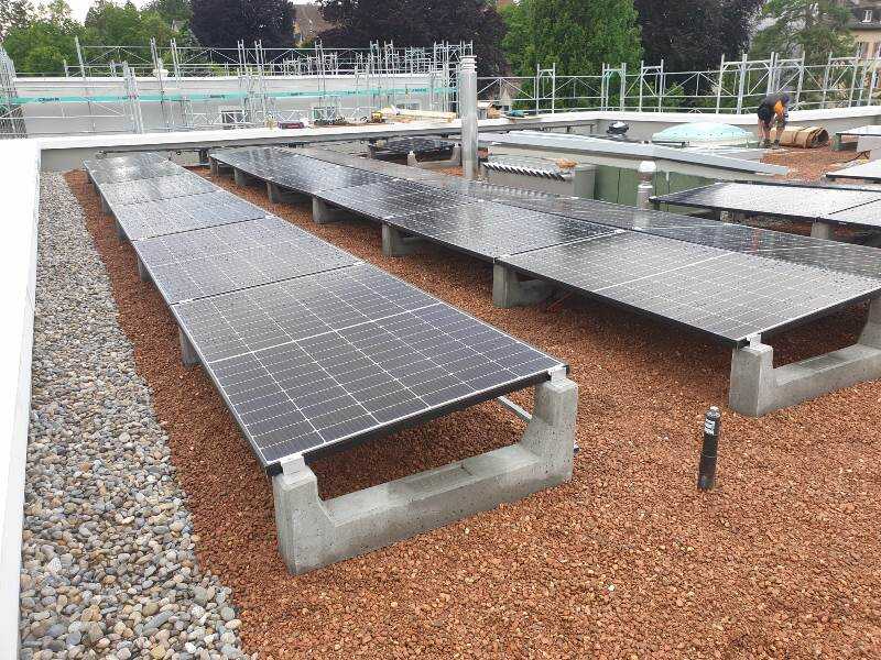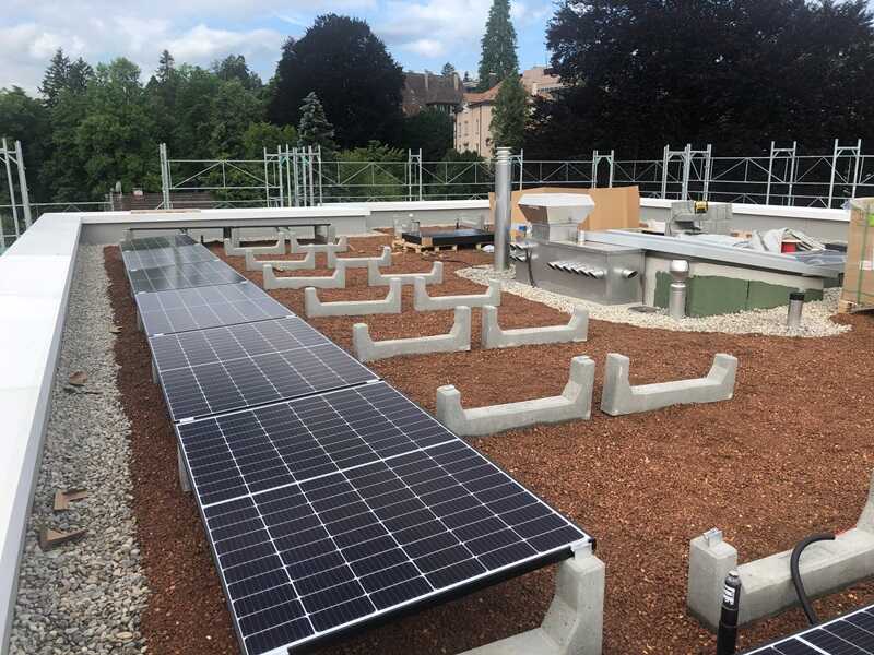 Es ist nie zu früh, um mit einer umweltfreundlichen Produktion zu beginnen, und diese beiden noch im Bau befindlichen Gebäude sind ein Beispiel dafür. Unser Kunde, die Schwizer Spenglerei AG, entschied sich beim Bau dieser Anlage für den Einsatz von Unterkonstruktione mit einer Neigung von 5°.3 in verschiedenen Positionen, um die Sonnenenergie zu allen Tageszeiten optimal zu nutzen.