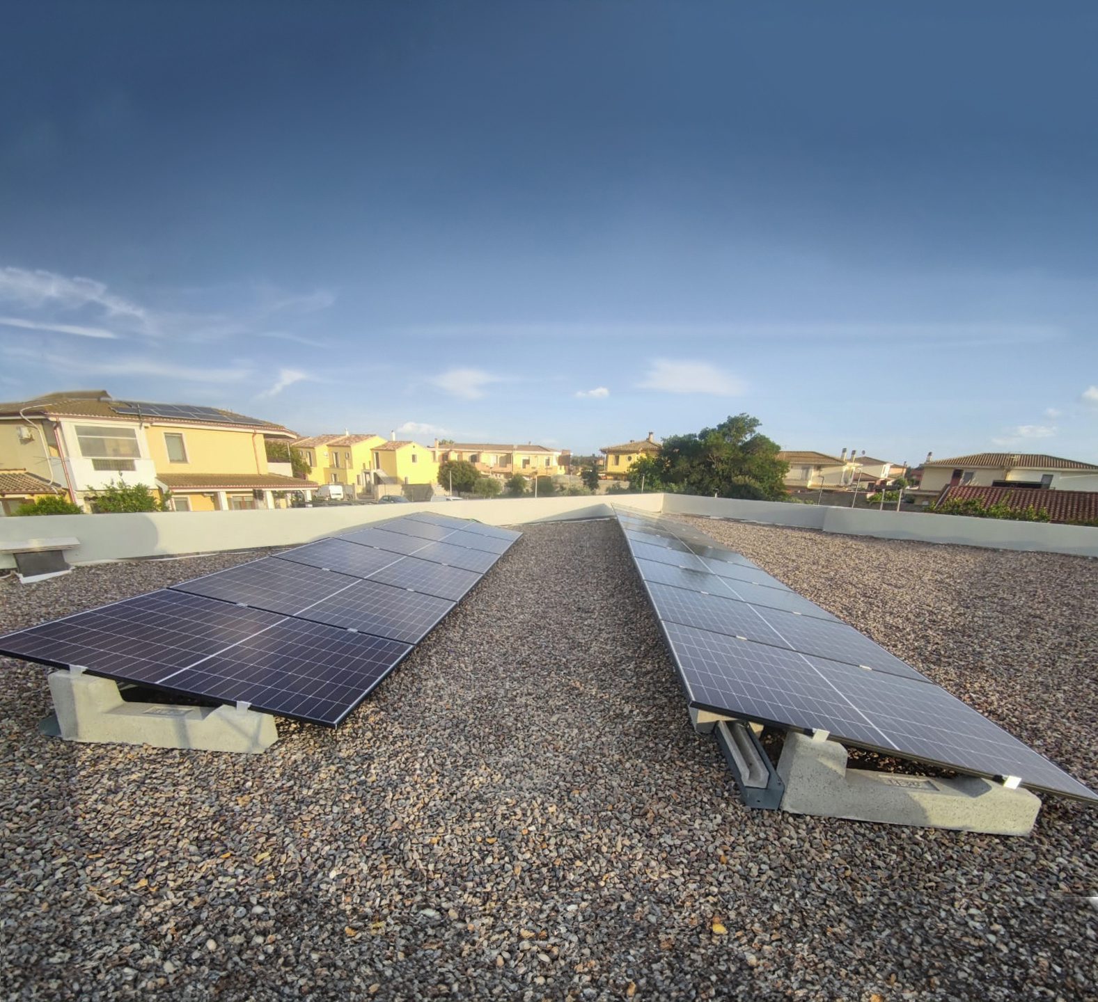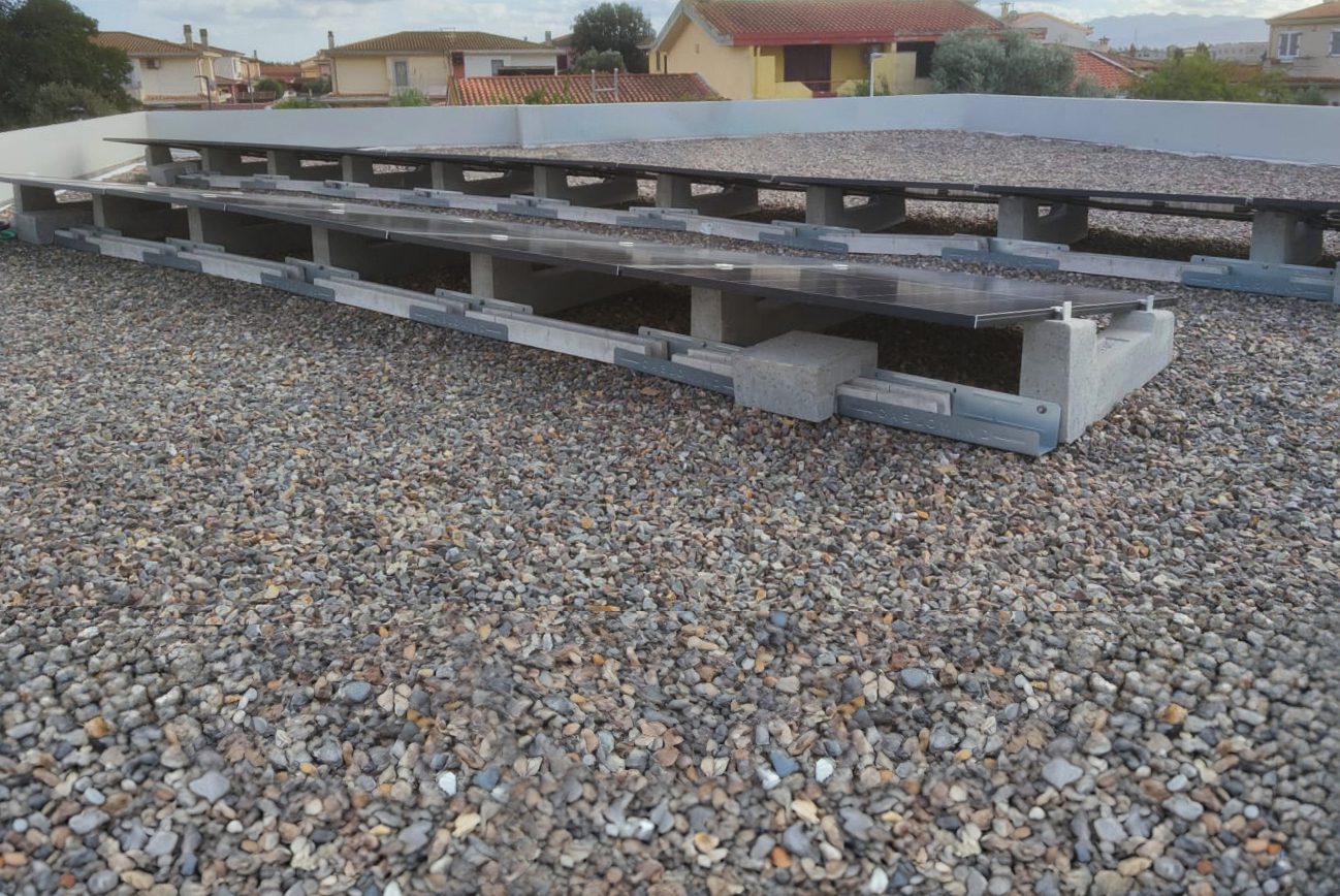 Diese kleine Photovoltaikanlage mit 6,7 kWp wurde von unserem Kunden SEAS Srl auf dem flachen Kiesdach eines Hauses in Villaspeciosa (SU) gebaut und dank des Einzelreihe Systems 10° von Sun Ballast konnte die Montage schnell und einfach abgeschlossen werden. Die Photovoltaik-Ballaste von Sun Ballast vereinen sowohl die Stütz- als auch die Ballastfunktion in einem einzigen einfachen Betonbauteil und können auf jeder Art von ebener Fläche verwendet werden, da sie keine Befestigungslöcher benötigen.