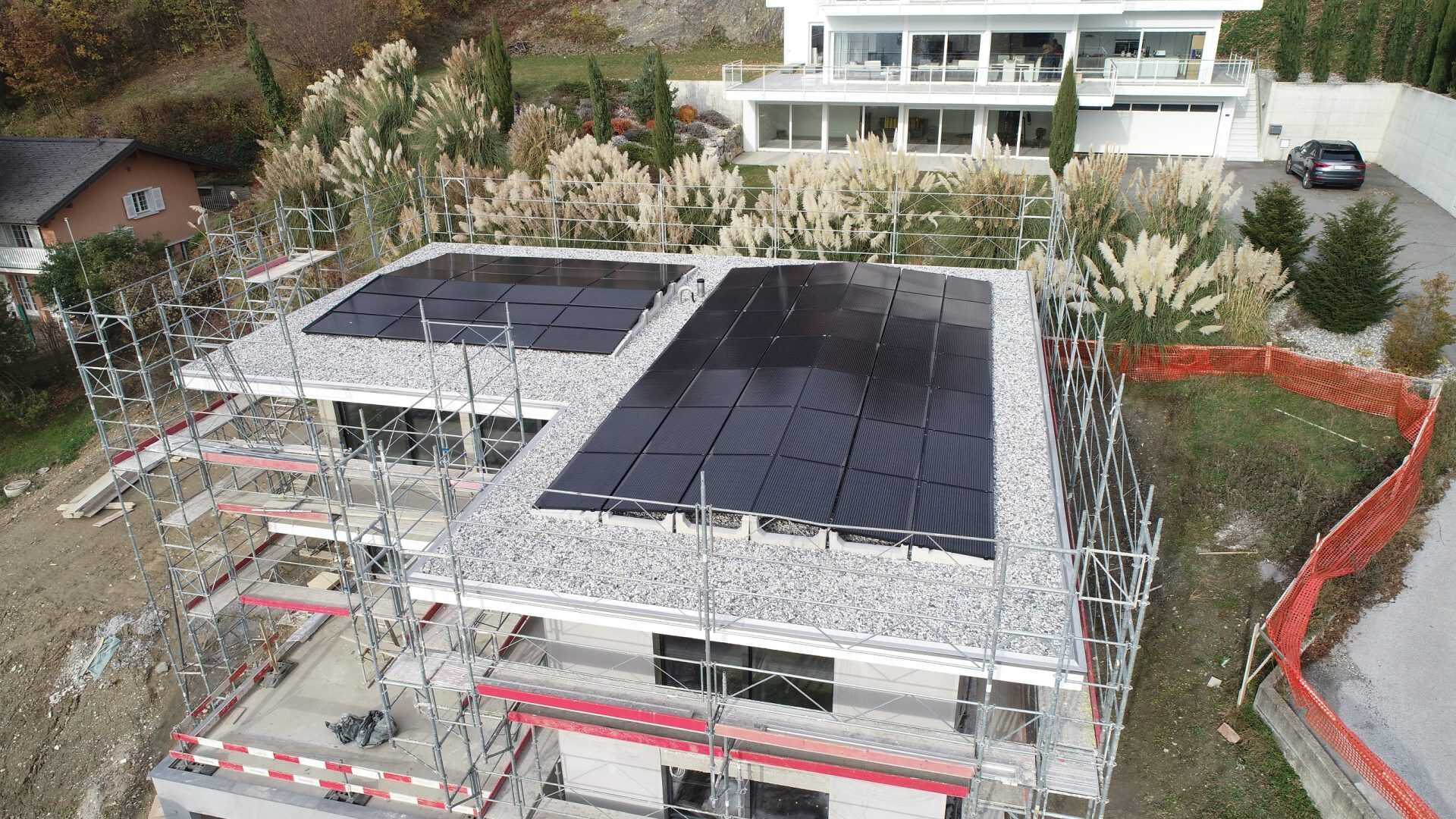 Eine wirklich innovative Photovoltaikanlage wurde von unserem Kunden Solalpes Energie SA auf dem Flachdach eines noch im Bau befindlichen Gebäudes in der Schweiz realisiert.
