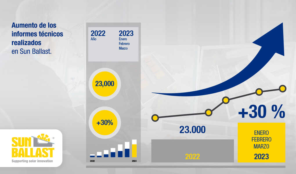 Hacer el montaje de equipos FV más fácil y rápido constituye desde siempre el compromiso primario de Sun Ballast, un compromiso que, tras diez años, sigue siendo premiado por cientos de empresas colaboradoras e instaladores de todo el mundo. Las tendencias de crecimiento, de hecho, se refieren también al trabajo de la Oficina técnica –uno de los más grandes valores añadidos de Sun Ballast– que cada día ofrece a miles de técnicos y proyectistas una asistencia rápida y gratuita en todas las fases de la instalación: en 2022 los informes técnicos elaborados por el servicio de asistencia han sido más de 23 000, y el dato del primer trimestre de 2023 indica un aumento adicional del 30 % con respecto al año anterior. Realmente notables también las cifras en relación con el Personal: en 2022 han entrado a formar parte del equipo de Sun Ballast 32 nuevos miembros, lo cual supone un + 40 % con respecto a las contrataciones de 2021.