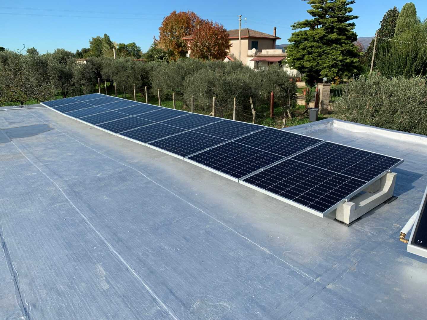 Con una hermosa vista sobre las colinas de los castillos Romanos, este sistema fotovoltaico doméstico de 3 Kw fue construido por nuestro cliente Bio Solare 3 Srl utilizando el lastre de dos filas de 5 ° del sistema vela.