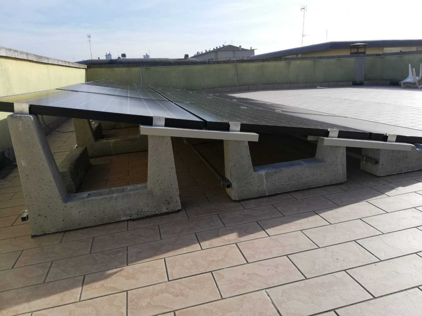 El sistema de vela también tiene la característica de ocupar poco espacio gracias a que no es necesario dejar espacio entre una fila y otra de los paneles fotovoltaicos. Por este motivo, nuestro cliente BM Impianti lo eligió para construir este sistema de 5,2 kWp.