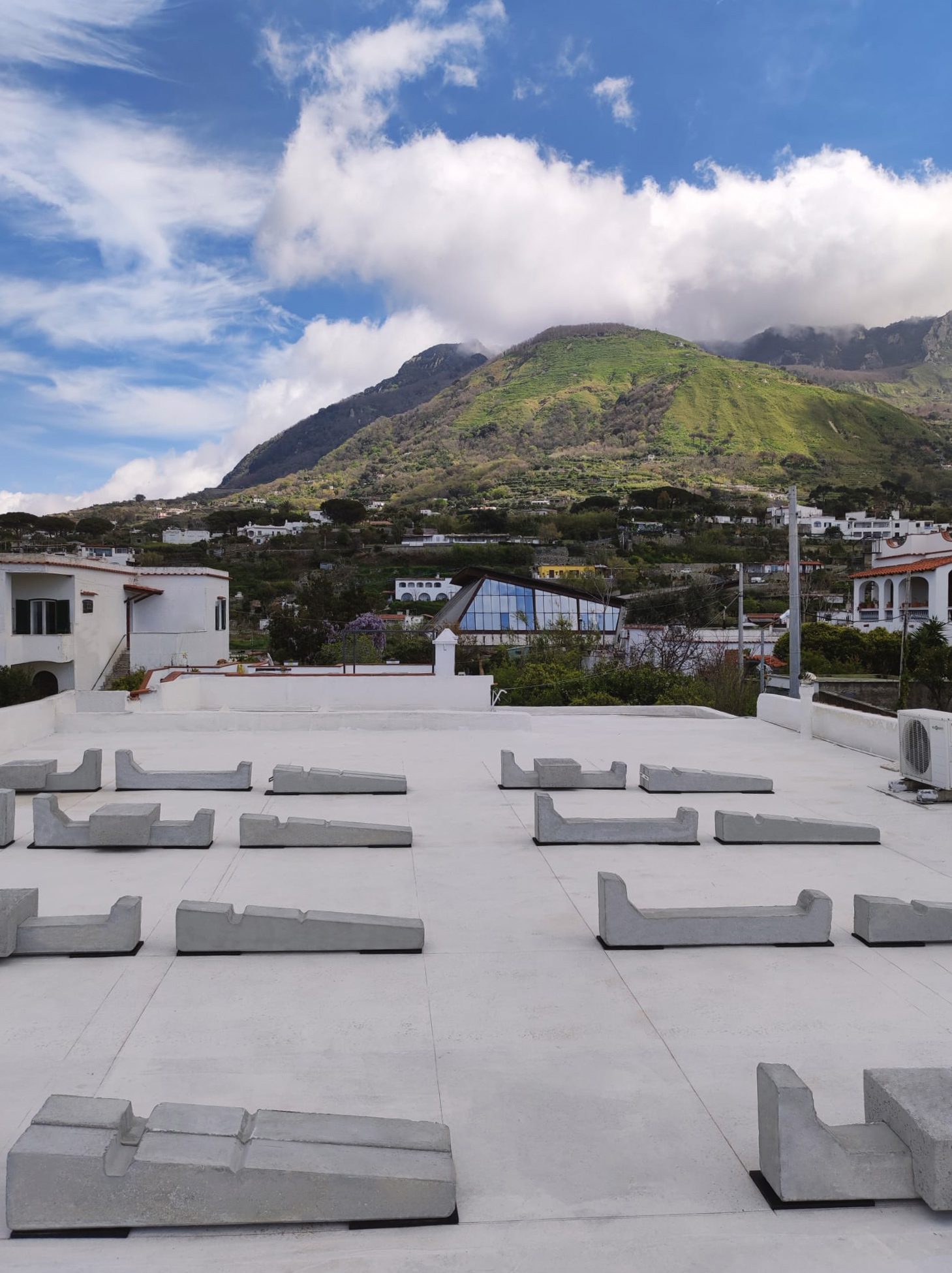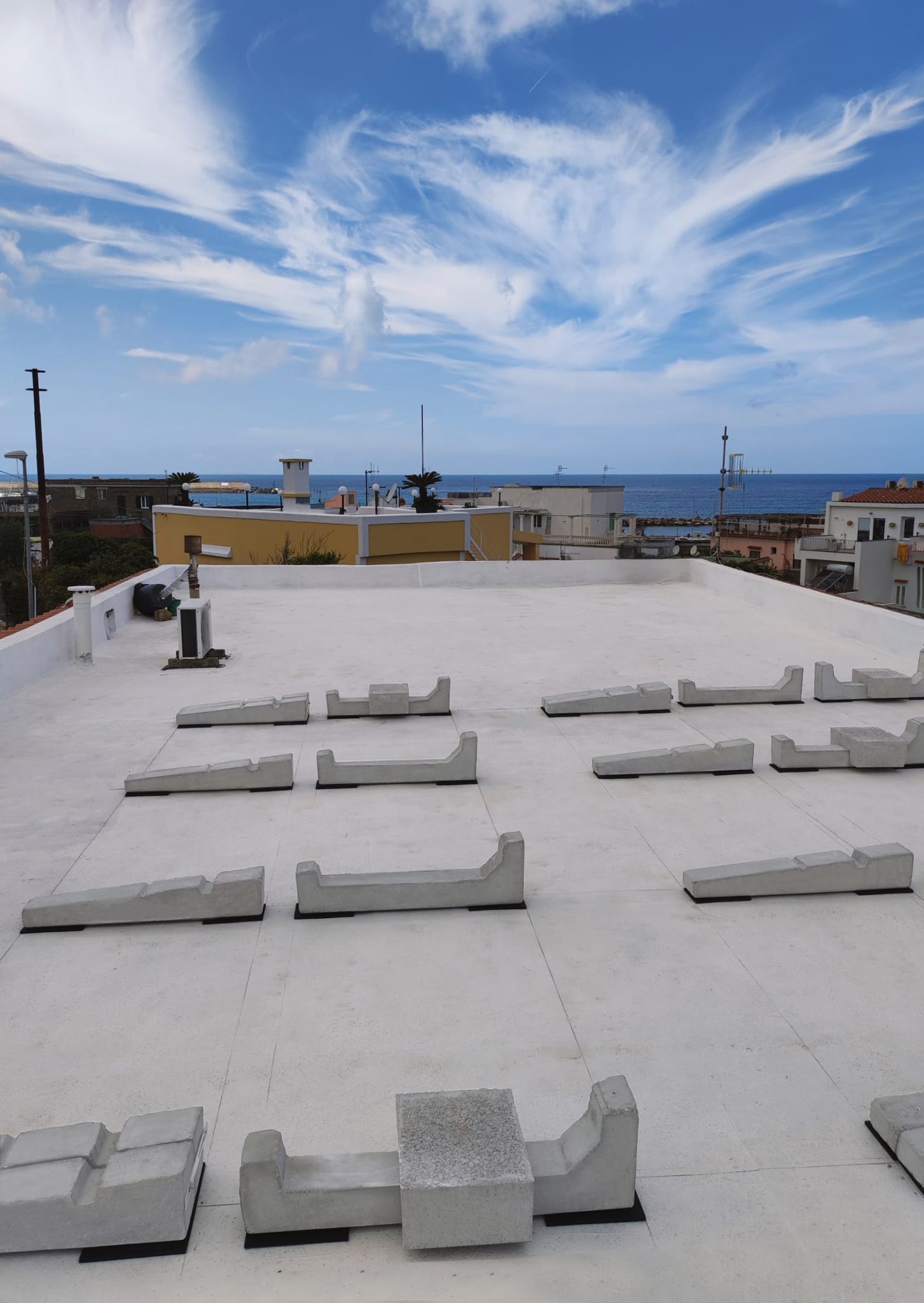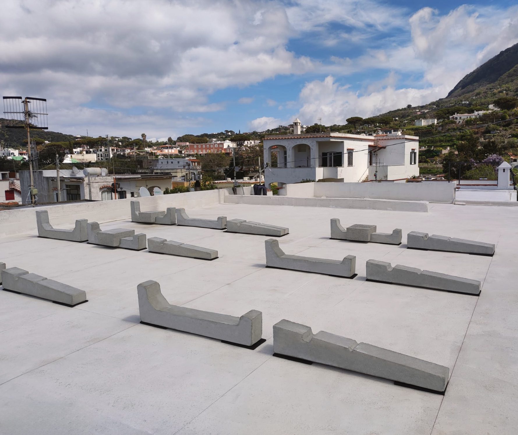 Compuesto por estructuras fotovoltaicas de hormigón, el sistema Vela permite realizar instalaciones fotovoltaicas eficientes y productivas en cubiertas planas, incluso en superficies reducidas: de hecho, los balastos Sun Ballast se colocan uno al lado del otro con altura creciente, reduciendo a cero la distancia entre filas de paneles fotovoltaicos y garantizando una instalación fácil y rápida en cualquier tipo de cubierta. La ausencia de orificios de fijación y de elementos complejos (barras, carcasas, etc.) simplifica enormemente las fases de instalación, y la posibilidad de ajustar el número de filas en función de las características específicas del tejado ofrece a planificadores e instaladores la máxima flexibilidad.