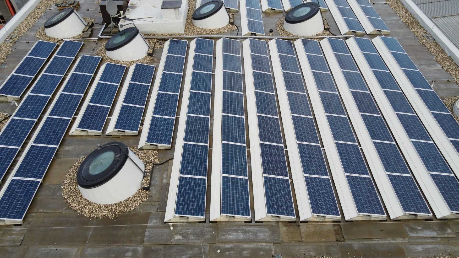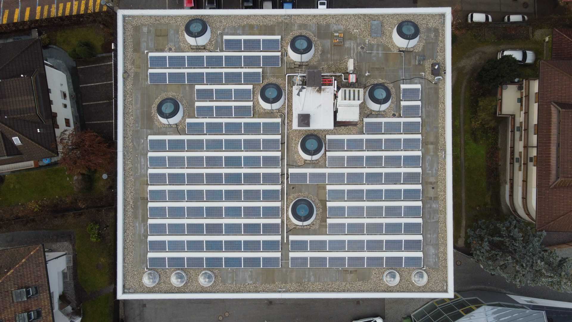 Esta hermosa instalación realizada con el lastre Sun Ballast Shed tras la renovación de la cubierta, que había sufrido importantes infiltraciones debido a la instalación de una antigua instalación fotovoltaica.