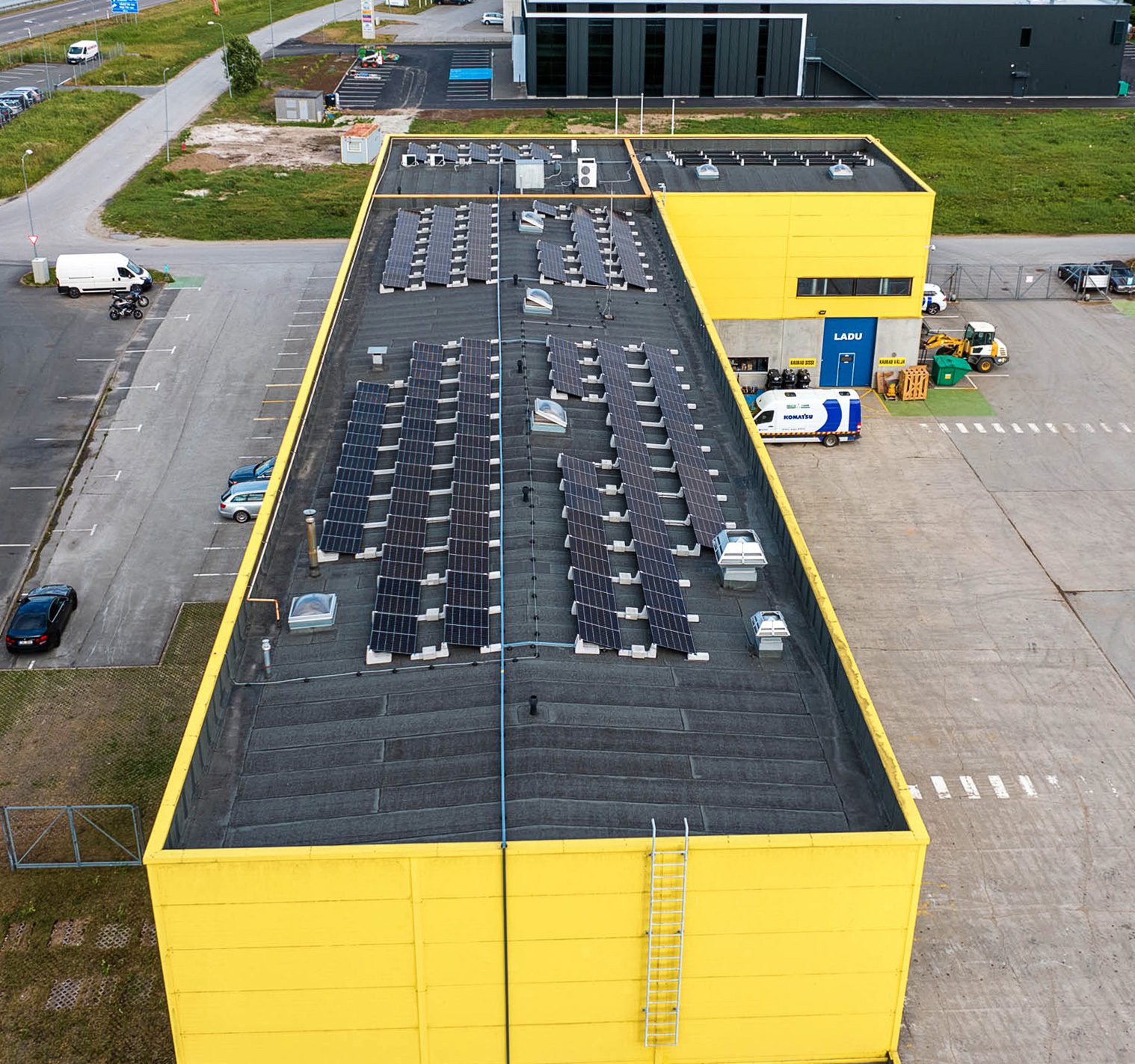 El sistema fotovoltaico de 58 kWp sobre cubierta plana que se ve en la foto fue realizado en un gran cobertizo de Peetri -un pueblecito del norte de Estonia limítrofe con Tallin- por nuestro cliente Energiapartner utilizando el sistema Connect 15°: la ausencia de orificios de fijación facilitó y agilizó enormemente los pasos de instalación, al tiempo que garantizó la integridad del revestimiento de la cubierta y el máximo nivel de estanqueidad y estabilidad. El sistema Connect está disponible en una amplia gama de inclinaciones -de 5° a 30°- y consta de tres tipos diferentes de estructuras de paneles fotovoltaicos: frontal, intermedia y final.