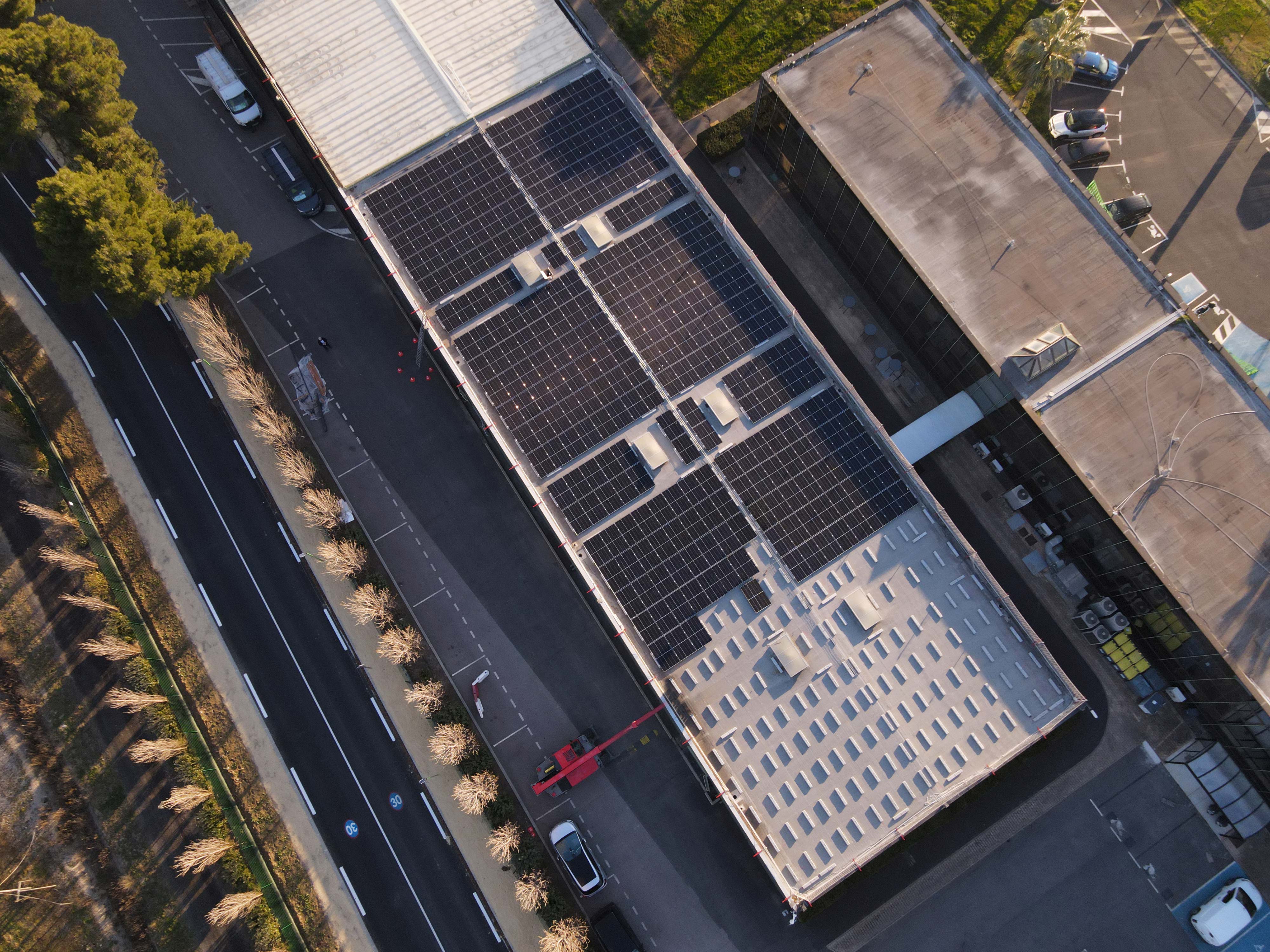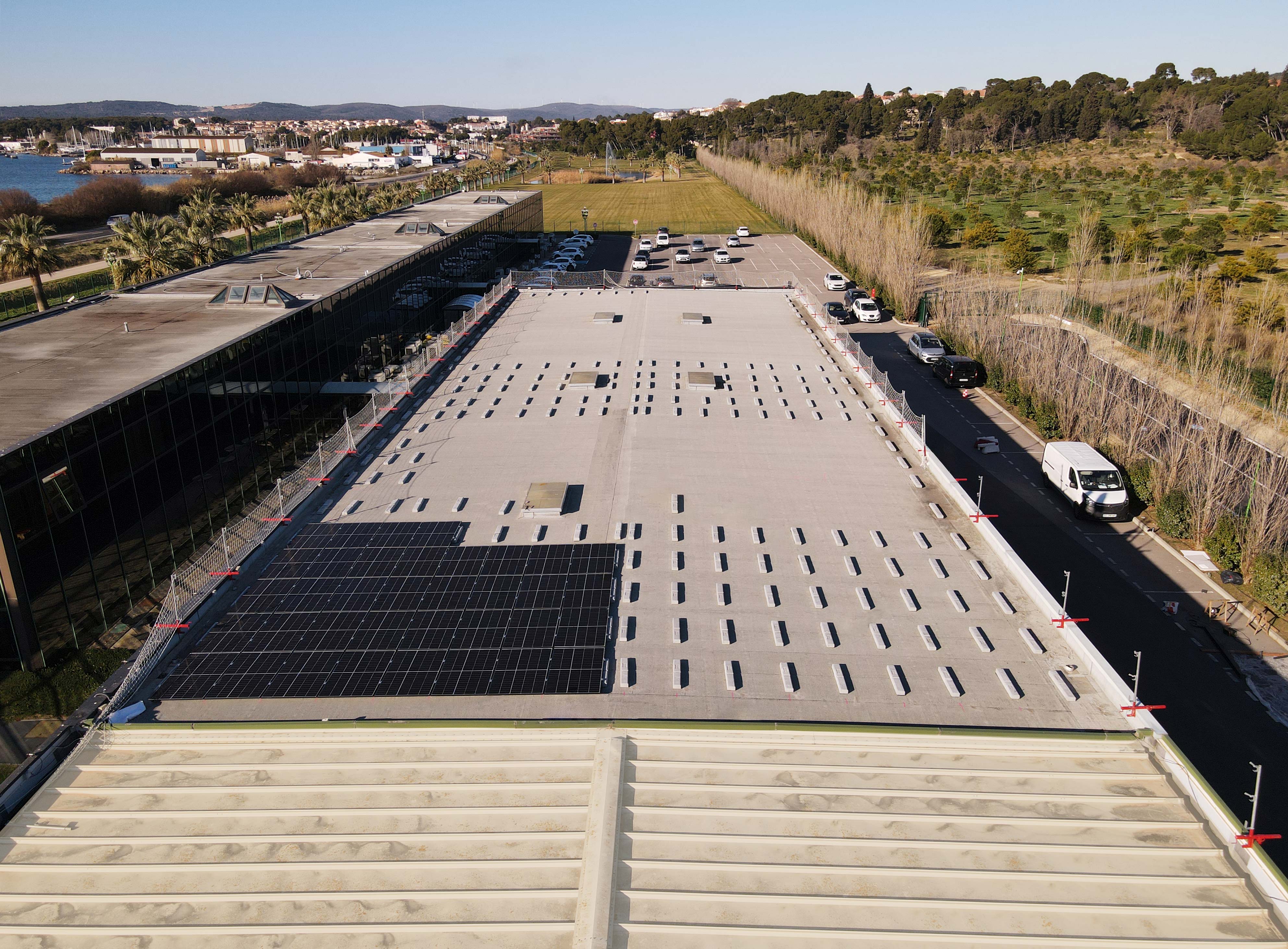 Realizada por HB Bat en el amplio techo plano de un edificio industrial en Vendres (Francia), esta instalación fotovoltaica ha alcanzado los 160 kW de potencia, y gracias a las instalaciones fotovoltaicas Sun Ballast la instalación se ha completado con gran rapidez.