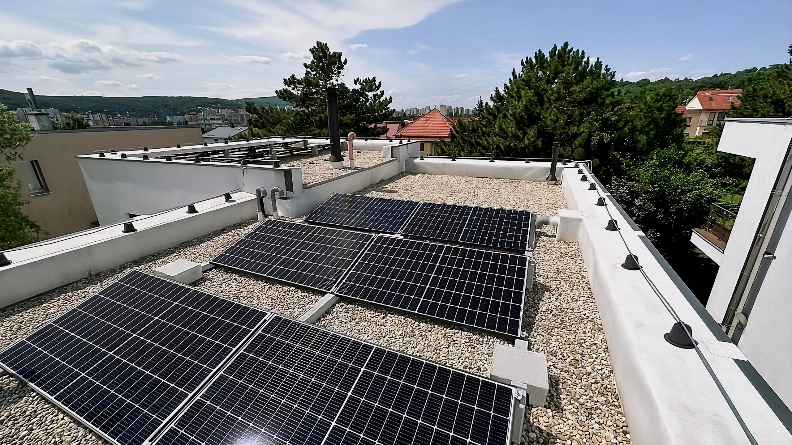 La planta de 5.7 kWp que se ve en las fotos fue realizada por nuestro cliente JV Energy en Jarovce (Eslovaquia) en la superficie de grava de un edificio residencial, y gracias al sistema Connect 15° la instalación ha garantizado a los paneles fotovoltaicos el más alto nivel de resistencia a las cargas de viento y nieve.