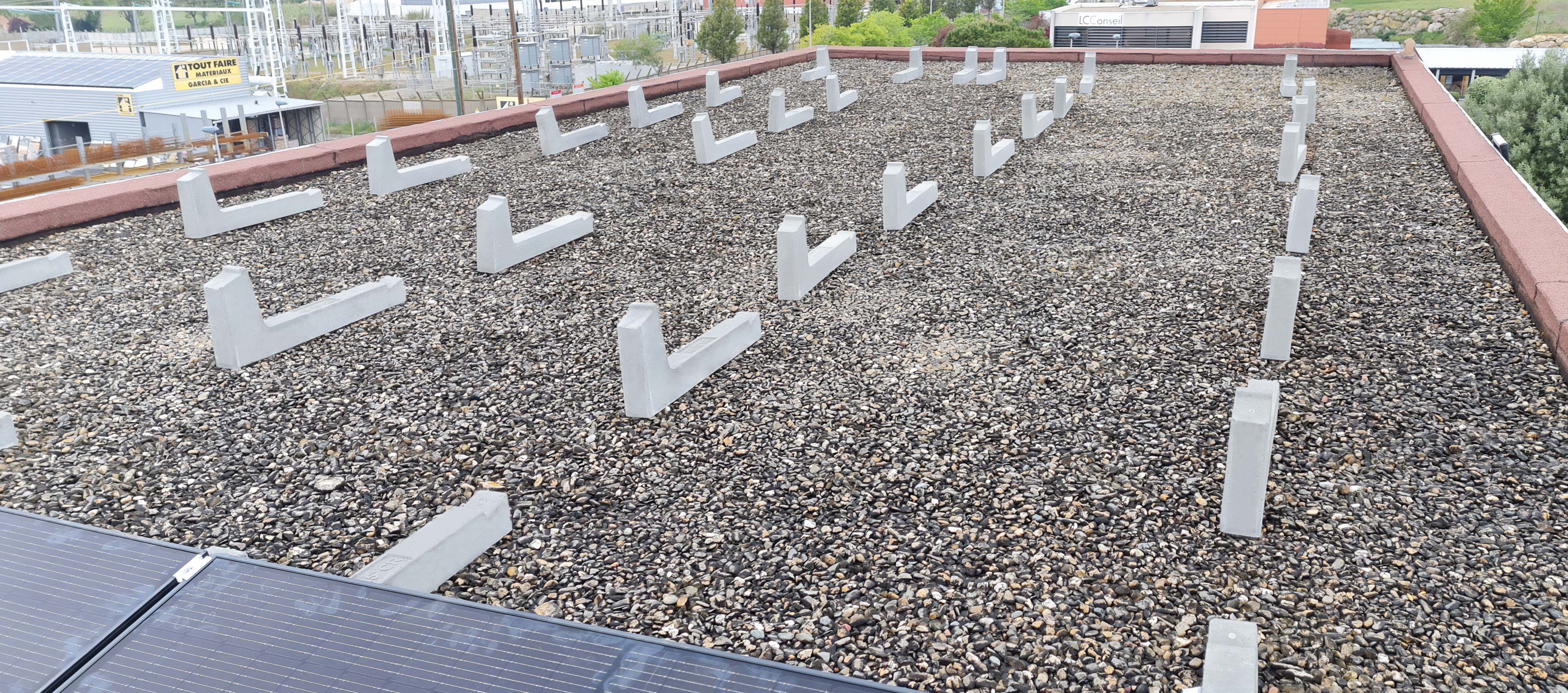 Esta instalación de 9 kWp – instalada en Beziers (Francia) por nuestro cliente Visiodevis.com – se ha montado sobre una superficie de grava, y la instalación de las estructuras no ha requerido ninguna preparación previa; De hecho, los lastres se han apoyado simplemente sobre la capa de cobertura, reduciendo los tiempos de instalación en más de un 30% y garantizando al mismo tiempo el máximo nivel de resistencia al viento.