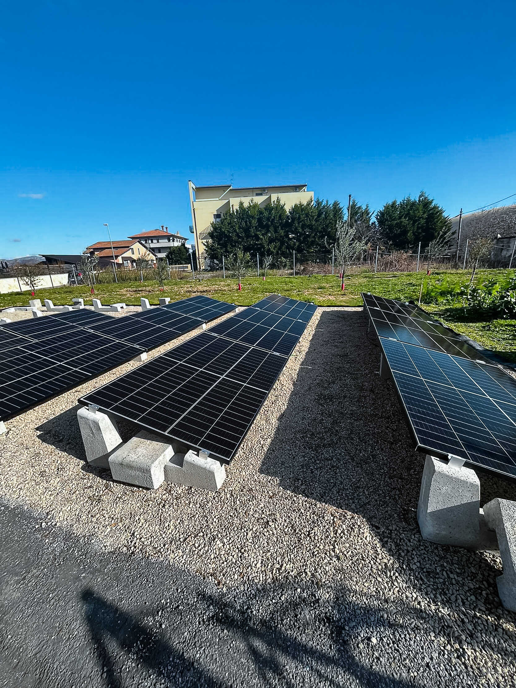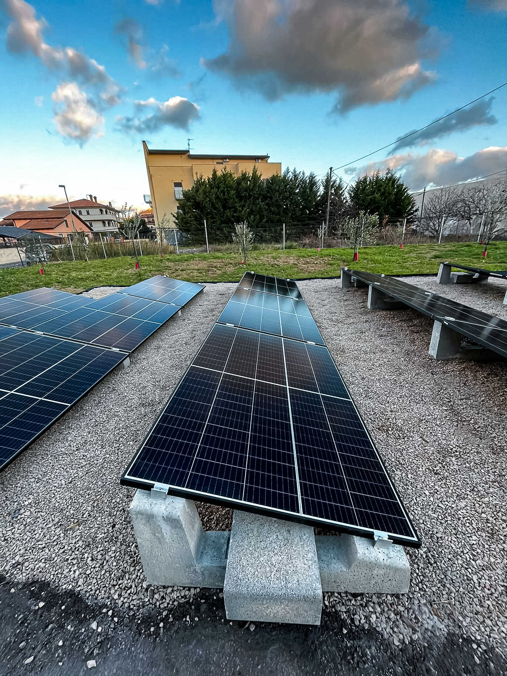 Entre los sistemas propuestos, el sistema Standard es el más versátil entre todos ya que permite mucha libertad en la colocación y precisamente por esto ha sido elegido por nuestro departamento técnico, de acuerdo con el cliente, para esta instalación, realizada sobre un terreno tratado anteriormente, recubierto con una tela no tejida y luego cubierto con grava.