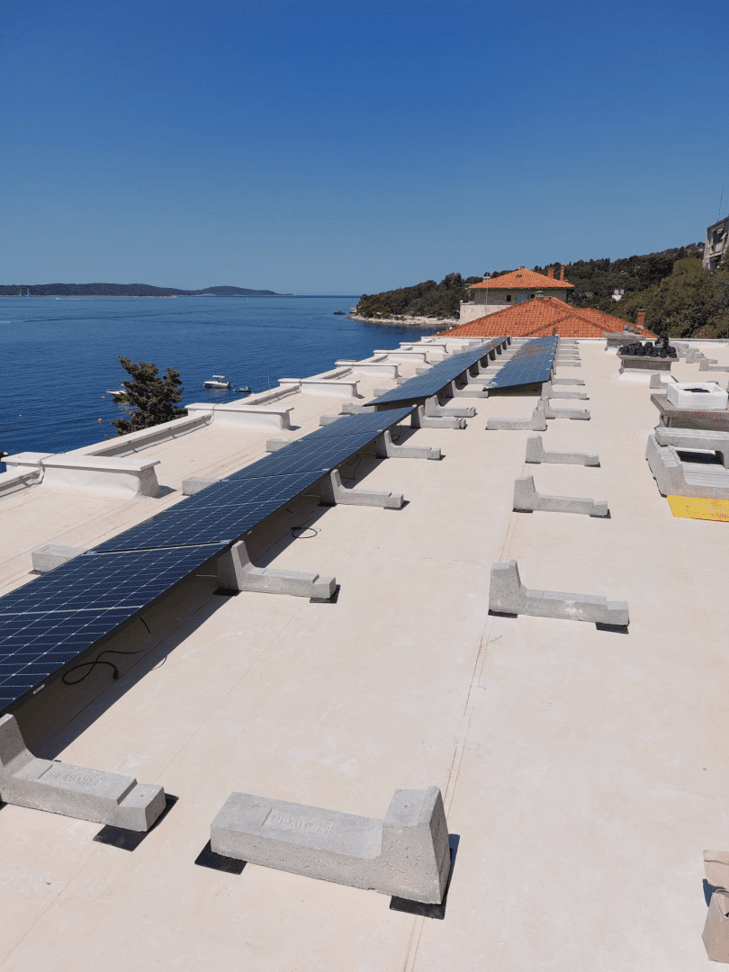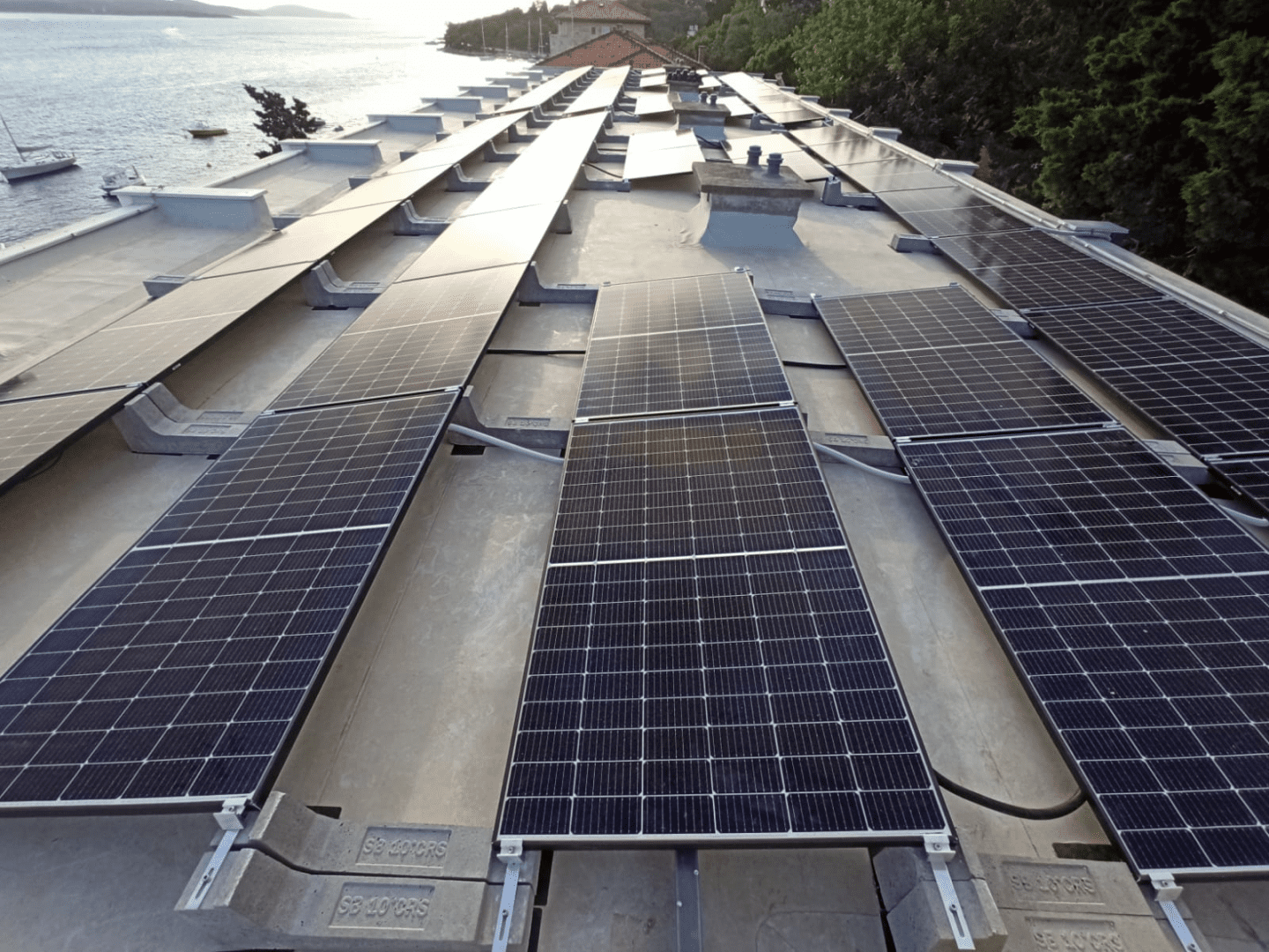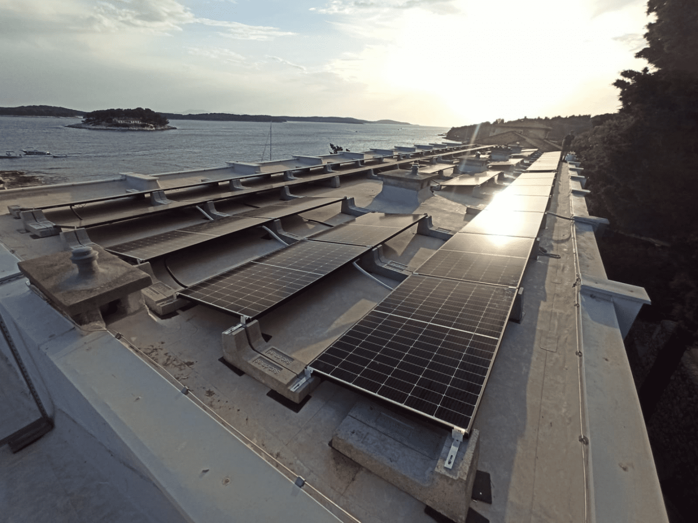 Una hermosa instalación frente al mar la realizada por nuestro cliente SOLAR PROJEKT d.o.o en Croacia gracias a las estructuras del sistema Connect small de Sun Ballast.