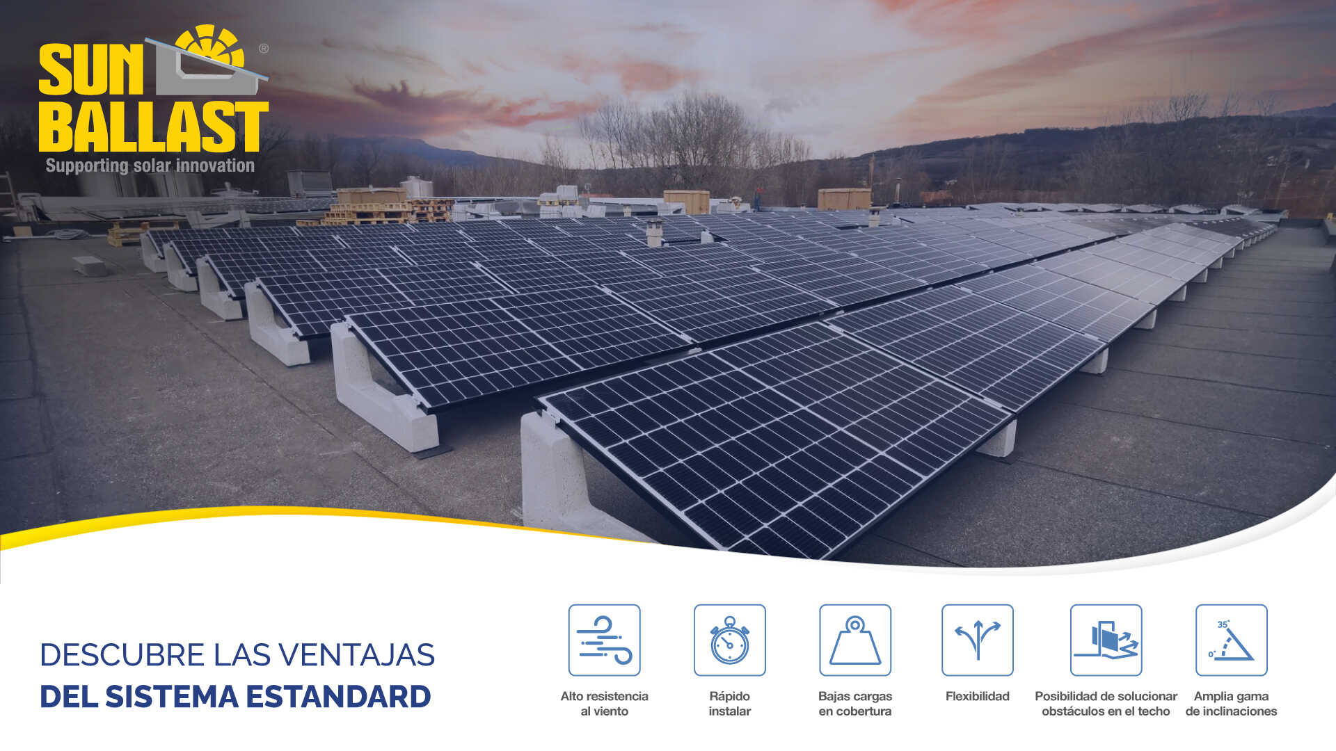 Con los soportes Sun Ballast, los paneles fotovoltaicos pueden colocarse en cualquier tipo de cubierta.