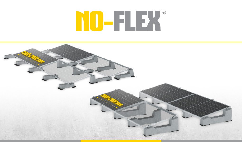 Lorsque l’objectif est de fournir aux panneaux de grandes dimensions la plus grande résistance possible, No-Flex représente la solution idéale : le support spécial en acier inséré sur le ballast supplémentaire permet de fixer les modules également sur la partie centrale, la plus exposée aux flexions et aux charges de vent et de neige. L’augmentation des points d’appui de 4 à 6 offre ainsi le plus haut niveau d’étanchéité et de stabilité, en réduisant à zéro le risque de flexion et en respectant tous les paramètres indiqués par les fabricants. No-Flex est compatible avec tous les systèmes Sun Ballast qui prévoient la pose horizontale des modules (Mono-rangée, Connect, Est-Ouest, Voile), et il est disponible dans une large gamme d’inclinaisons de 3°à 30°.