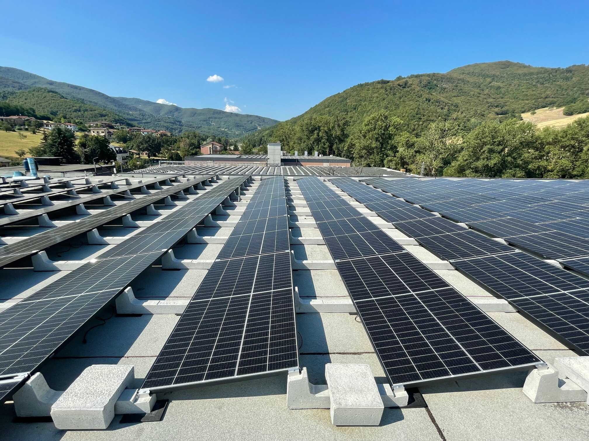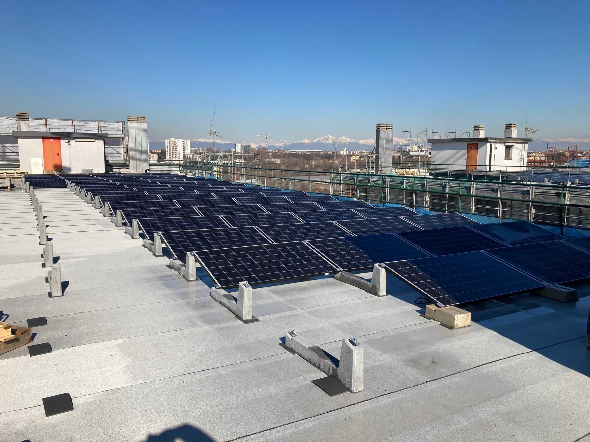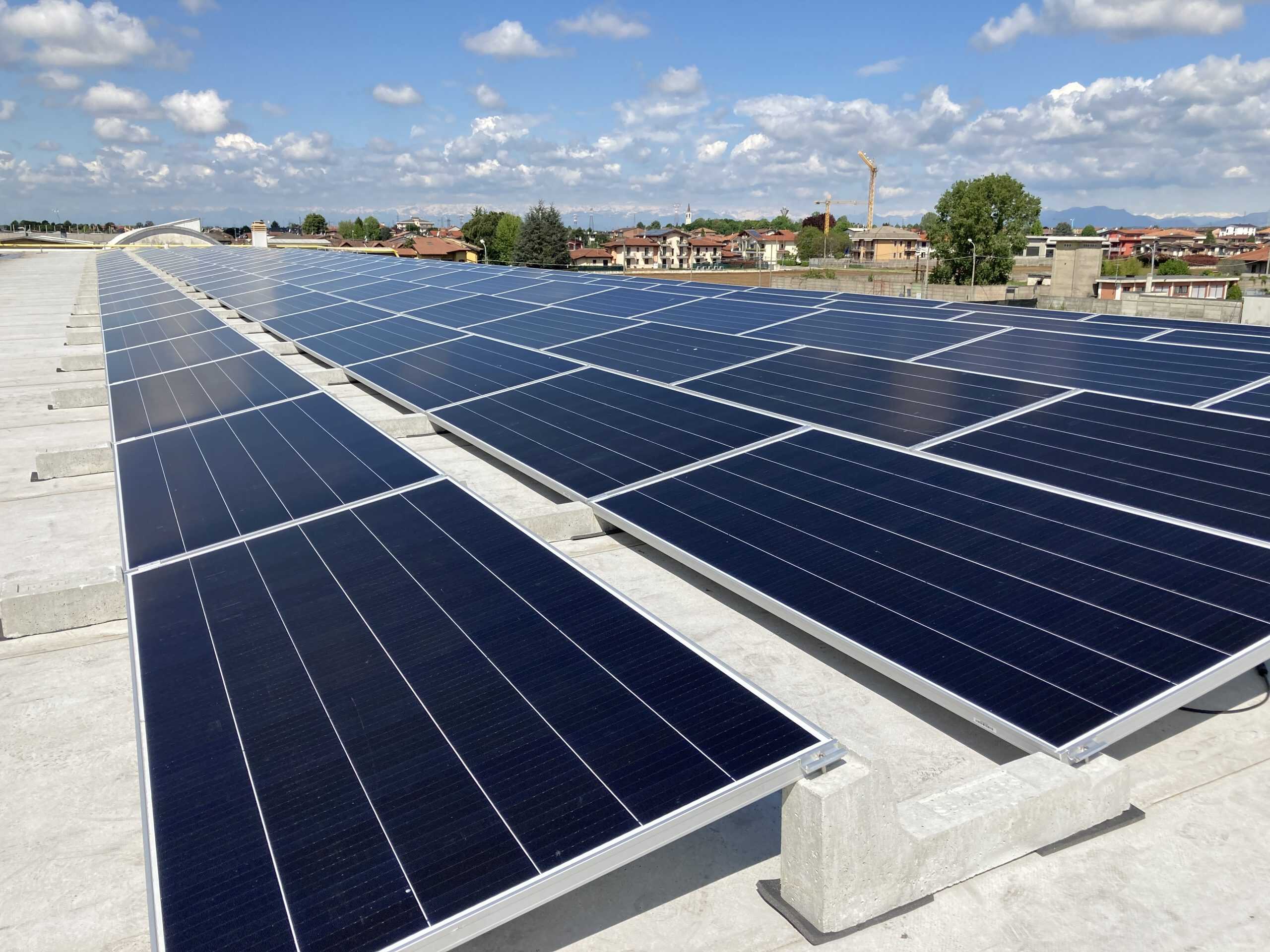 Le système en question, extrêmement simple et rapide à installer, consiste en un réticule de ballasts en béton reliés entre eux : un ballast frontal, un ballast central et un ballast final qui ferme les rangées de panneaux.
