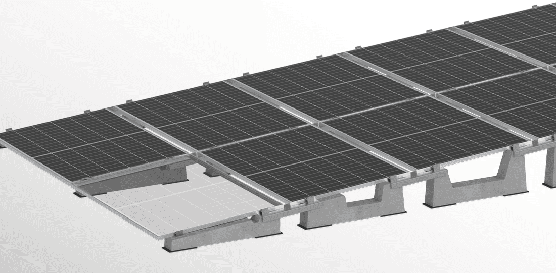 Les systèmes Sun Ballast se caractérisent par une extrême simplicité due au fait que le bloc en béton remplit simultanément la fonction de support et de lest,