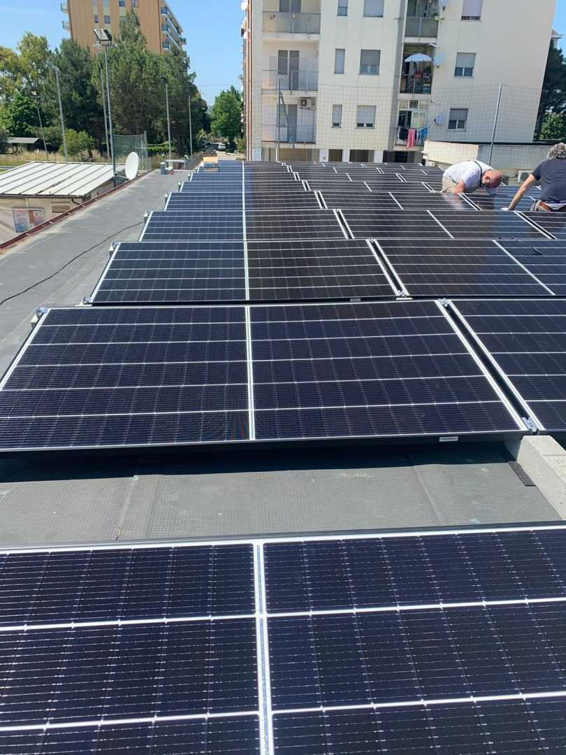 Notre client 4ENERGY SRL a choisi Sun Ballast Système Connect 10° en raison de sa légèreté et de sa charge répartie sur le toit plat. La forte résistance au vent et la grande stabilité des panneaux photovoltaïques sont garanties sans qu’il soit nécessaire de percer la toiture, évitant ainsi l’apparition d’infiltrations d’eau désagréables. Stabilité, résistance au vent et rapidité d’installation sont les principales caractéristiques qui ont convaincu notre client et lui ont permis de construire un système photovoltaïque capable de produire 15,01 kWc d’énergie propre
