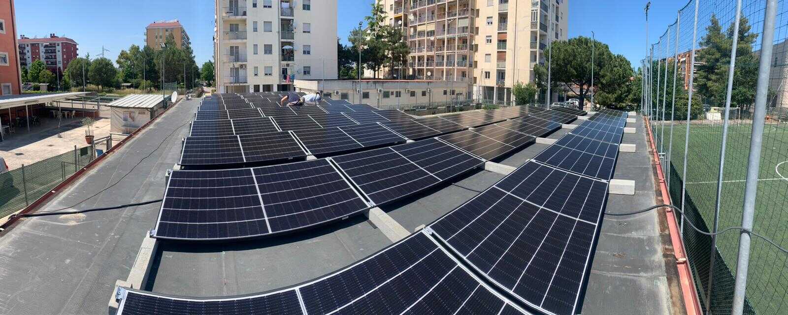 Vous avez besoin d’énergie pour faire du sport mais vous en avez également besoin pour éclairer le terrain et pour cette raison, ce système photovoltaïque a été installé directement dans les vestiaires adjacents à un terrain de football.