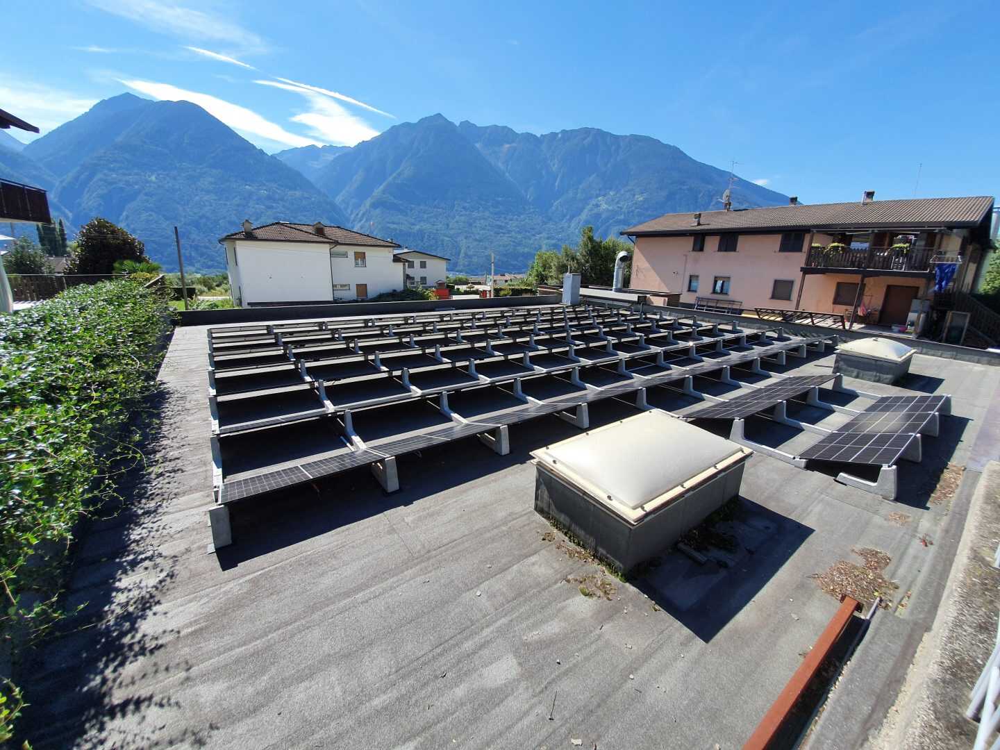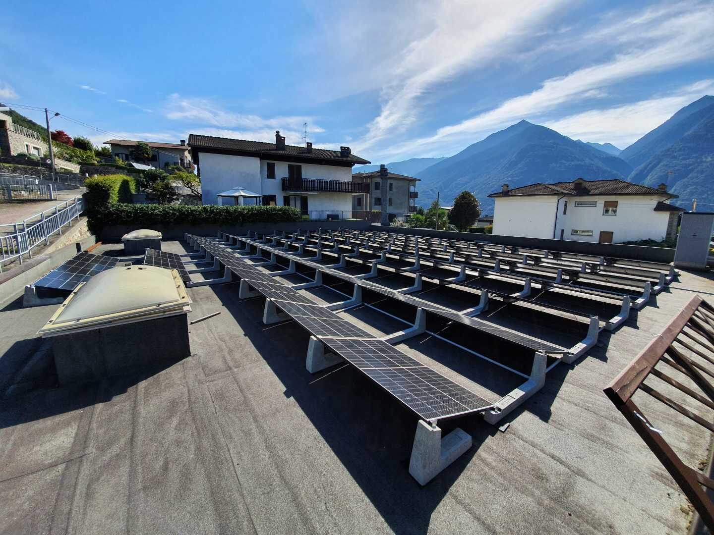 Sur le toit plat d’un immeuble jouxtant un terrain de football, dans une petite ville avec une vue imprenable, notre client ABCLOG S.R.L a installé ce système photovoltaïque capable de produire 33,20 kwc. Pour cette installation, les poids du Système Connect ont été sélectionnés, les poids idéaux pour avoir un système stable sans fixer le lest et percer la couverture sur laquelle ils sont installés, afin d’éviter les infiltrations d’eau désagréables.