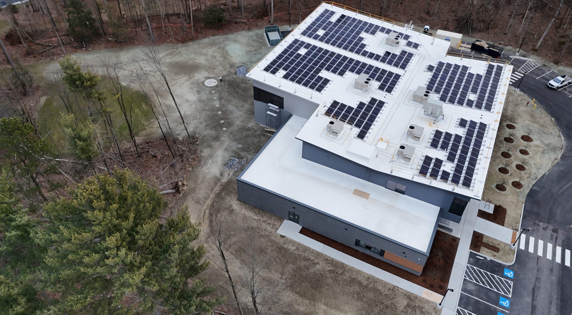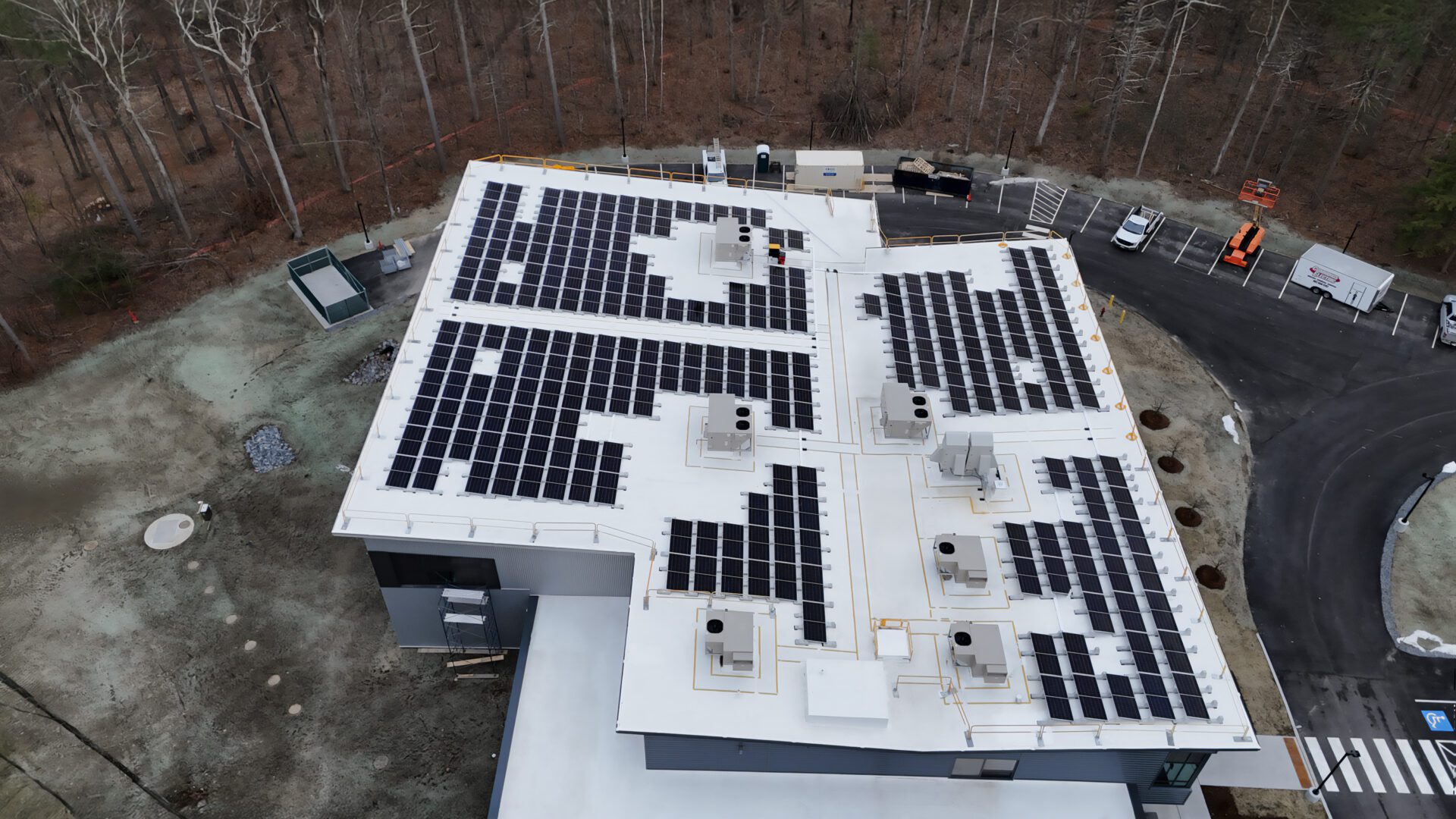 Cette belle installation de 135 kW a été réalisée à Colchester (Vermont, États-Unis) par notre client Aegis Renewable Energy Inc. en utilisant deux versions différentes du système Connect, avec des inclinaisons de 5° et 15° : ce système de fixation pour panneaux photovoltaïques est en effet disponible en plusieurs versions, variant en termes de poids et d’inclinaison, et est compatible avec tout type d’installation PV sur toit plat.