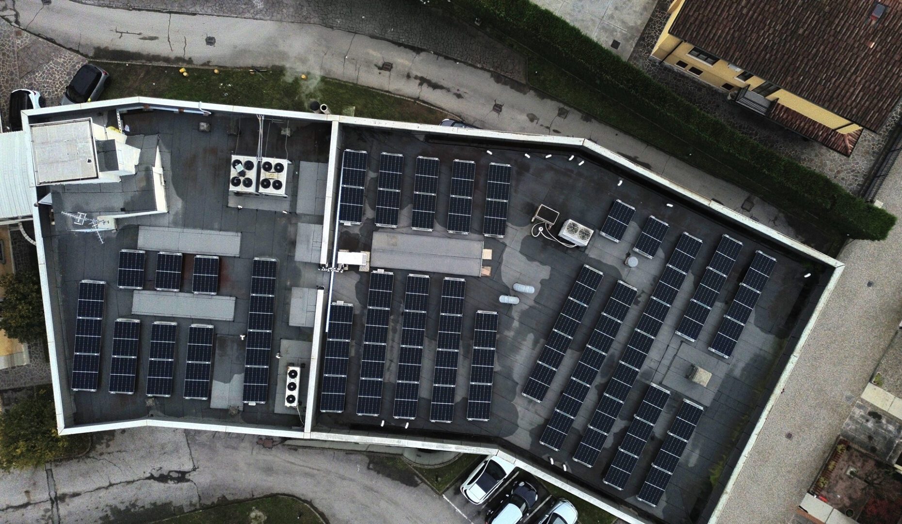 Cette installation photovoltaïque sur toit plat de 33 kW a été réalisée à Mantova, et grâce aux structures photovoltaïques Sun Ballast l’installation a été achevée sans endommager en aucune façon la couche de couverture en gaine.