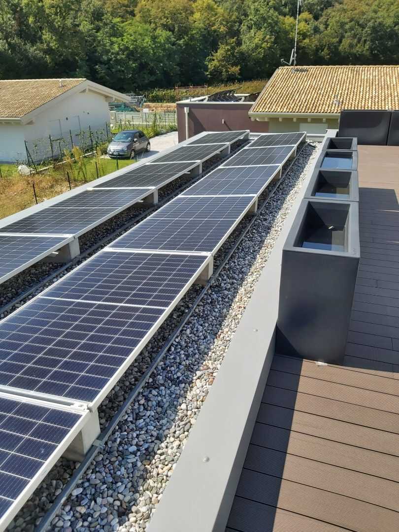 Mais avec le ballast Sun Ballast 3° mis en pose horizontale, il a été facile grâce à sa polyvalence et sa facilité d’installation. Il suffit en effet de la poser sur le sol sans devoir percer la couverture. Que ce soit du gravier comme dans ce cas, ou tout autre type de sol, peu importe, les installations photovoltaïques Sun Ballast sont adaptées à toutes les situations.
