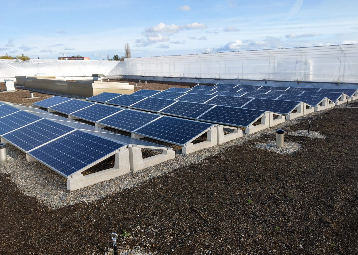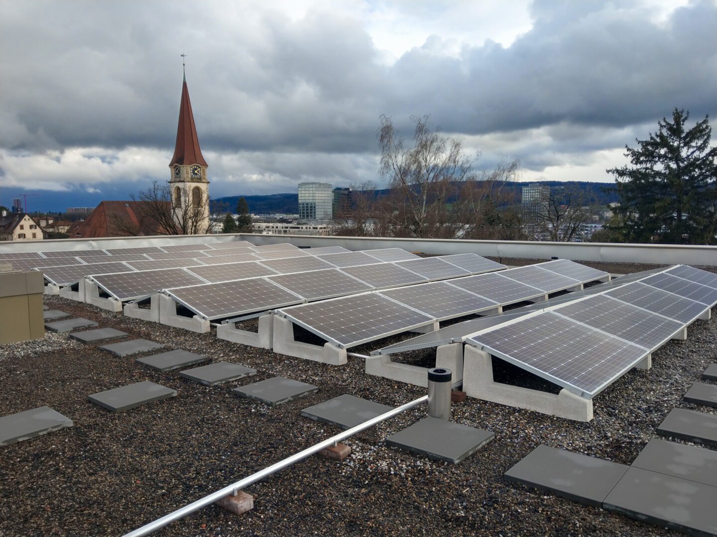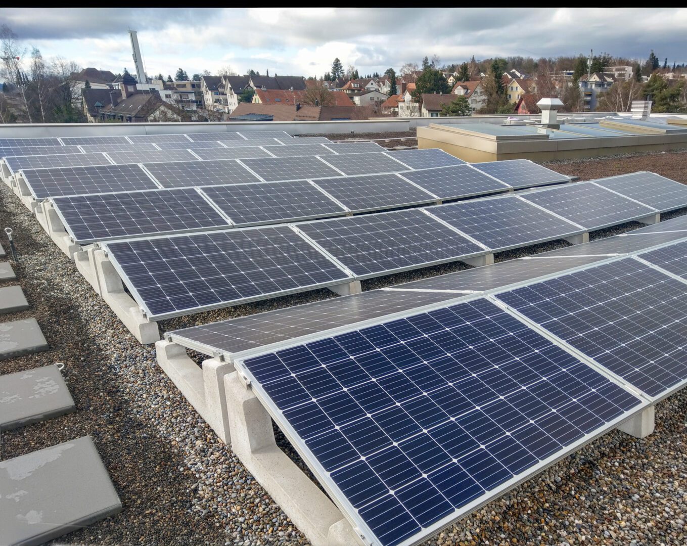 Réalisé à Wallisellen (Suisse) par notre client Solosolar GmbH, cette installation photovoltaïque sur toit plat a été monté sur un revêtement en gravier. Grâce aux lests pour panneaux photovoltaïques Sun Ballast, l’installation a été réalisée rapidement et facilement.