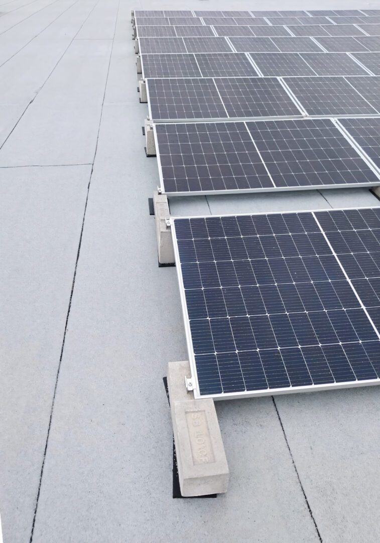 Utilisé par des milliers de professionnels de l’industrie, le système de montage Connect pour toits plats de Sun Ballast offre une résistance maximale au vent tout en soulageant les toits des bâtiments. Le système forme un treillis, chaque lest photovoltaïque est relié à tous les autres dans un réseau unique de structures. La répartition du poids sur le toit est ainsi bien équilibrée sur toute la surface, et la résistance est garantie même en cas de fortes rafales. Les ballasts du système Connect, comme tous les autres systèmes, ne nécessitent aucun trou de fixation et peuvent être utilisés rapidement et facilement sur n’importe quel type de toit plat, qu’il s’agisse de toits en gravier, en tôle ou en béton.