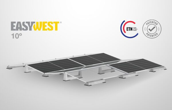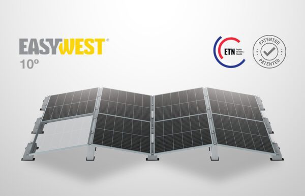 Le nouveau système Est-Ouest de Sun Ballast: EasyWest, est conçu pour optimiser l’efficacité des installations Est-Ouest sur toits plats, tout en minimisant la charge sur la toiture. Grâce à sa grande résistance au vent et à sa compatibilité avec tous types de modules, EasyWest offre un support extrêmement léger, maniable et robuste. Son design innovant permet une installation rapide et simple, ce qui le rend idéal aussi bien pour les panneaux standards que pour les modules de grande taille.
