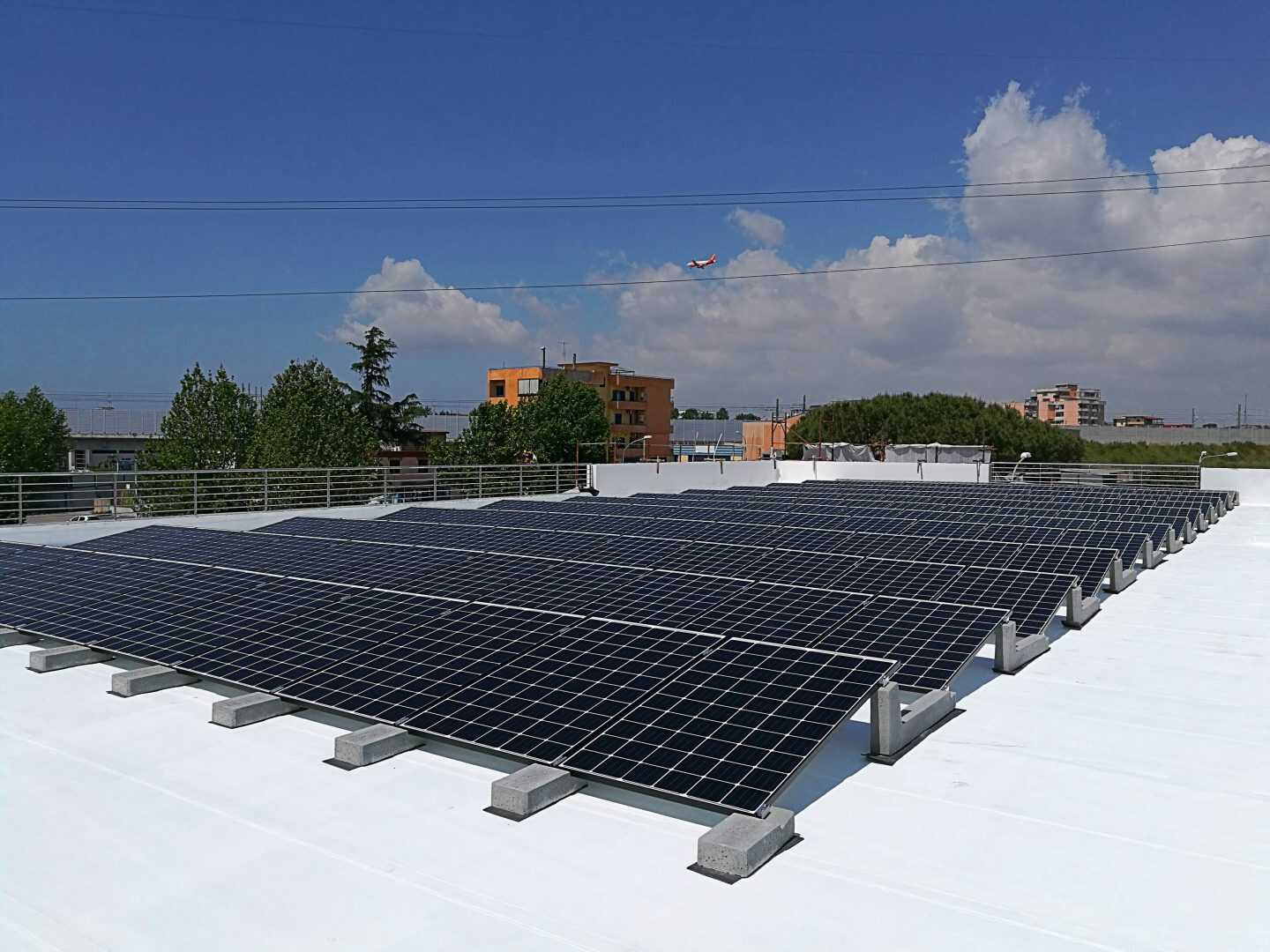 Di fatto questo sistema semplifica e agevola l’installazione dell’impianto fotovoltaico su coperture piane.