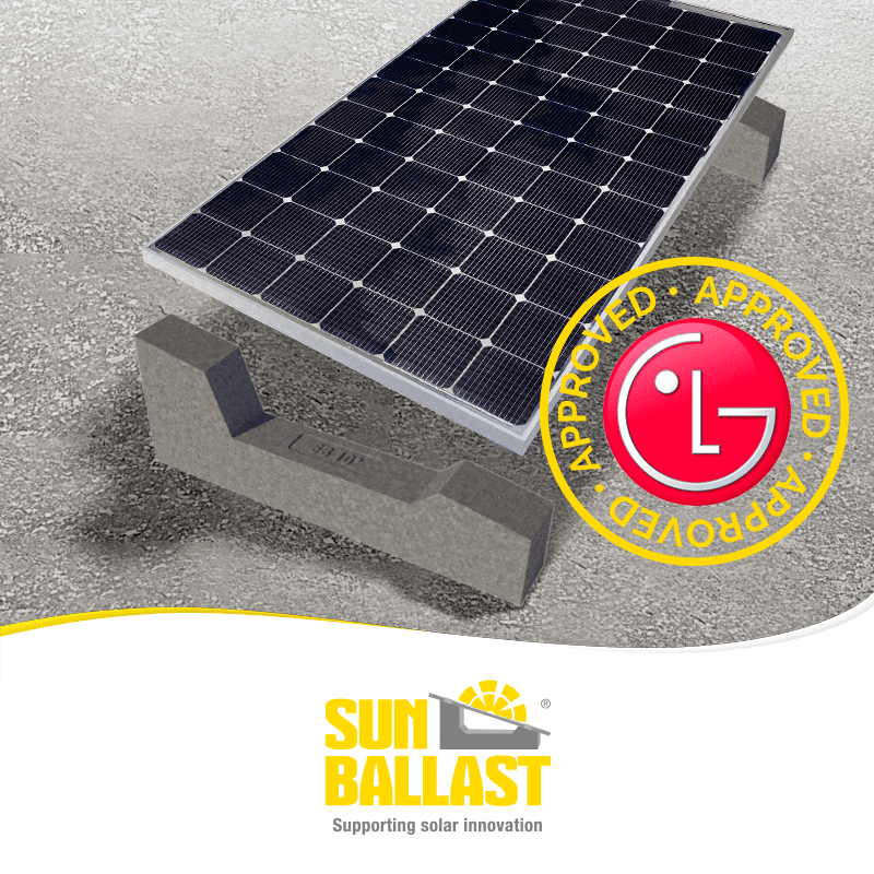 Questo significa che quando il cliente sceglie un pannello fotovoltaico LG per un’installazione su un tetto piano può utilizzare con serenità i nostri supporti. Il progettista può quindi contattare tranquillamente Sun Ballast, certo della qualità del fissaggio del pannello ai nostri supporti, indicati come compatibili da LG stessa.