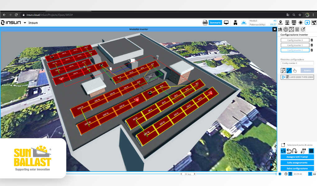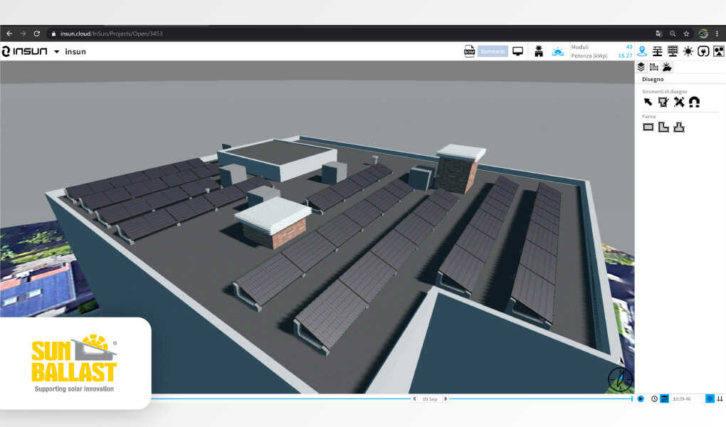 Altra novità fondamentale, che continueremo ad approfondire nei nostri seguitissimi webinar, riguarda il configuratore Sun Ballast, basato sulle logiche di InSun, il principale software di progettazione di impianti fotovoltaici con cui Sun Ballast collabora da anni. L’obiettivo? Sviluppare una piattaforma sempre più facile e intuitiva, che semplifichi al massimo tutte le fasi di progettazione. Con il nostro configuratore disegnare un impianto fotovoltaico diventa molto più rapido, e l’ultima versione contiene numerosi aggiornamenti che rendono ormai questo software un concreto punto di riferimento: fra i tanti, diventa ad esempio possibile personalizzare completamente le caratteristiche dei pannelli, selezionando liberamente dimensioni e potenza in base alle esigenze del cliente; si amplia inoltre la gamma di accessori disponibili, che ora include anche il nuovo sistema No-Flex e Cablowind, il peso supplementare brevettato da Sun Ballast che oltre ad aumentare sensibilmente la stabilità delle installazioni permette anche di alloggiare al suo interno i cavi con ordine e professionalità. Definire una precisa Distinta Materiali diventa ancora più semplice, e la possibilità di condividere tutta la documentazione tecnica direttamente dallo smartphone velocizza tutte le fasi di comunicazione, sia con il nostro Ufficio tecnico che con i committenti.