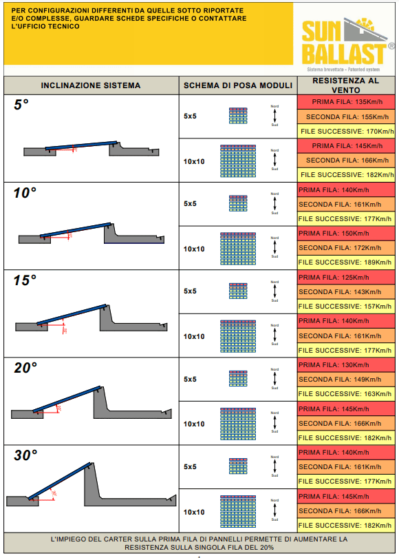 Uno degli accessori in questione è il Carter frangivento, una struttura che viene posizionata sulla parte posteriore delle zavorre, nell’ultima fila, grazie al quale si è notata una riduzione dei coefficienti del vento.