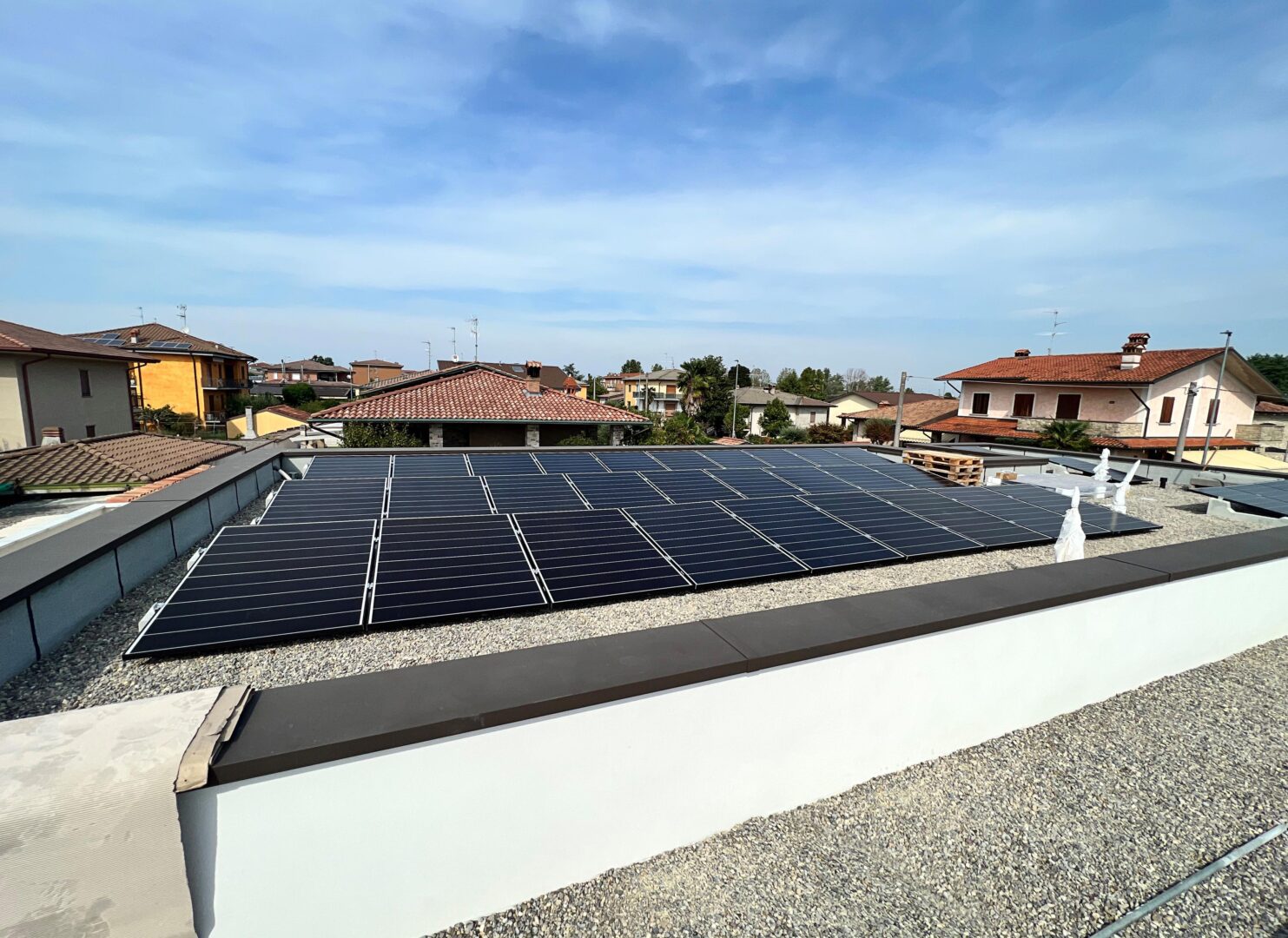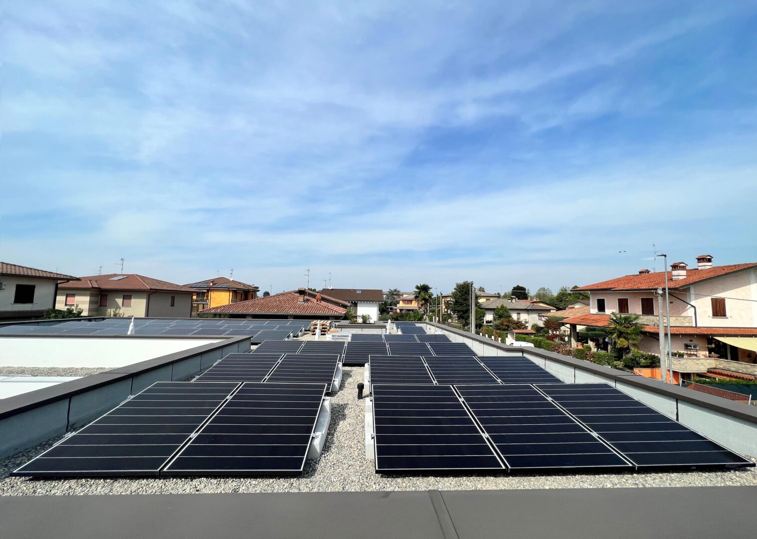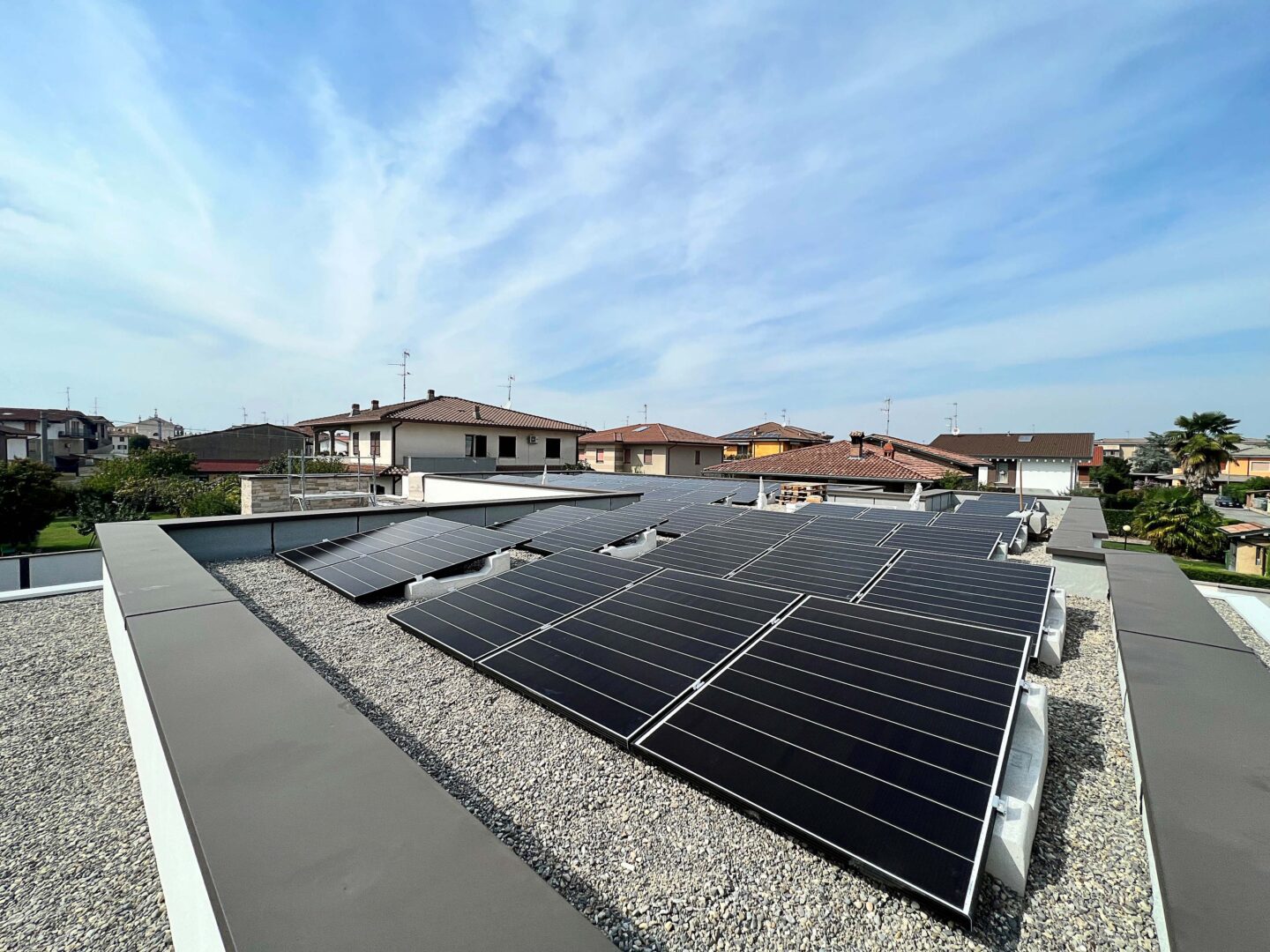 Questo impianto FV da circa 20 kW è stato realizzato dal nostro cliente Alia s.r.l. sul tetto piano di un edificio di Rudiano (Brescia), e l’utilizzo delle strutture per pannelli fotovoltaici Sun Ballast ha permesso di completare il lavoro in tempi rapidi e senza complicazioni. Le zavorre in cemento rendono infatti l’installazione molto più semplice e veloce – anche sulle coperture in ghiaia – evitando l’utilizzo di accessori complessi e semplificando tutte le operazioni di montaggio.