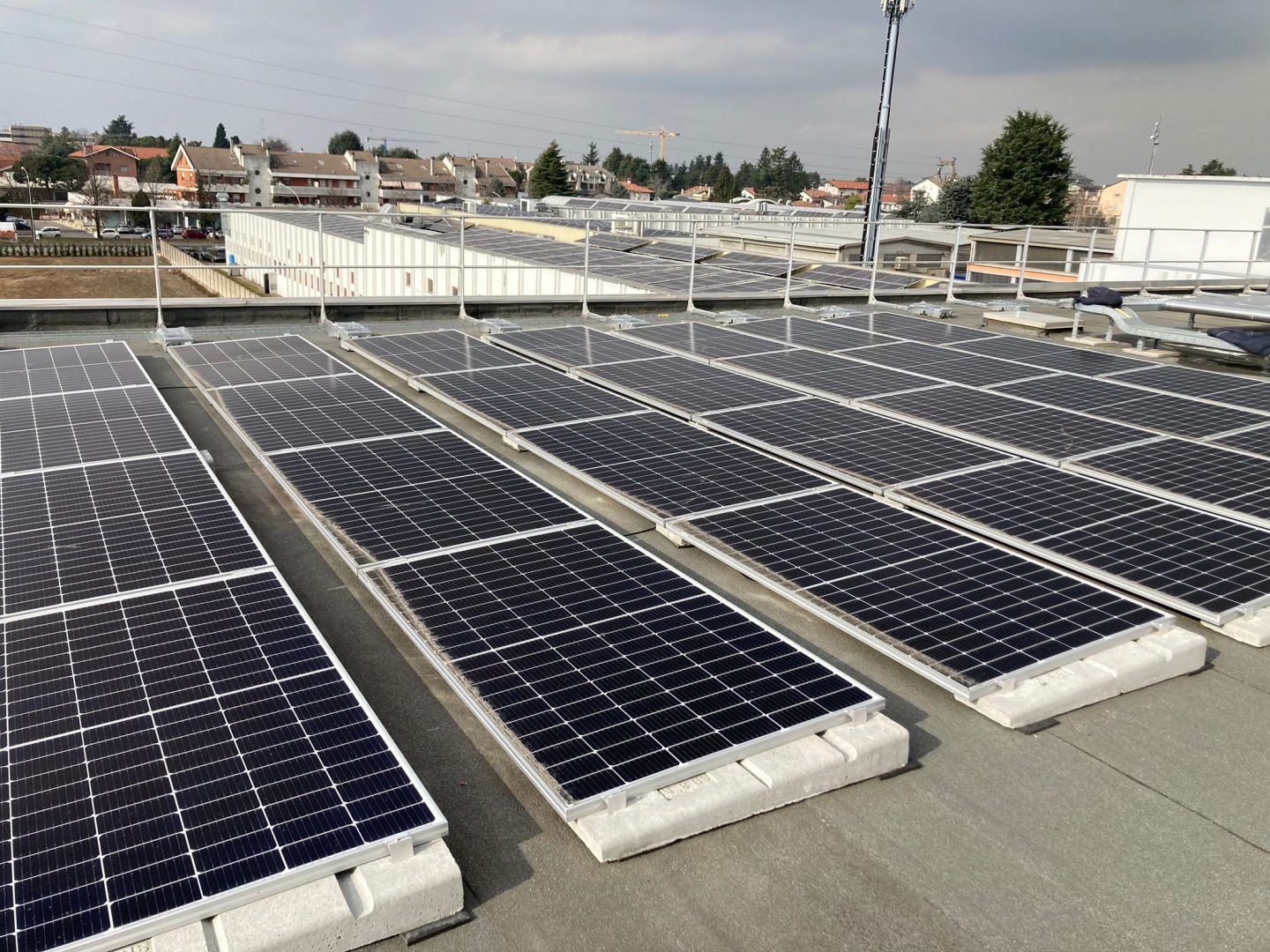 Un’incredibile installazione fotovoltaica capace di produrre fino a 102 kwp di energia rinnovabile, realizzata grazie all’utilizzo delle zavorre del sistema Standard Sun Ballast con un’inclinazione di soli 3°. La copertura, non presentando limiti dati da alti parapetti o ombreggiamenti, si è prestata benissimo all’installazione di questo tipo di strutture con un grado di inclinazione di 3°, comunque perfetto per ottimizzare al massimo la produttività dei pannelli. Grazie alle zavorre Sun Ballast, che non necessitano di essere fissate, la copertura in guaina, di cui il tetto è interamente ricoperto, è stata perfettamente preservata e non si è andato in nessun modo ad inficiare la sua azione impermeabilizzante, pur riuscendo a mantenere una grande stabilità dell’intero impianto. Versatilità delle strutture, facilità di montaggio e mancato fissaggio delle zavorre alla copertura sono dunque gli elementi principali che hanno convinto il nostro cliente B4 ENERGY SOLUTION S.R.L. a scegliere le zavorre Sun Ballast per la realizzazione di questo impianto.
