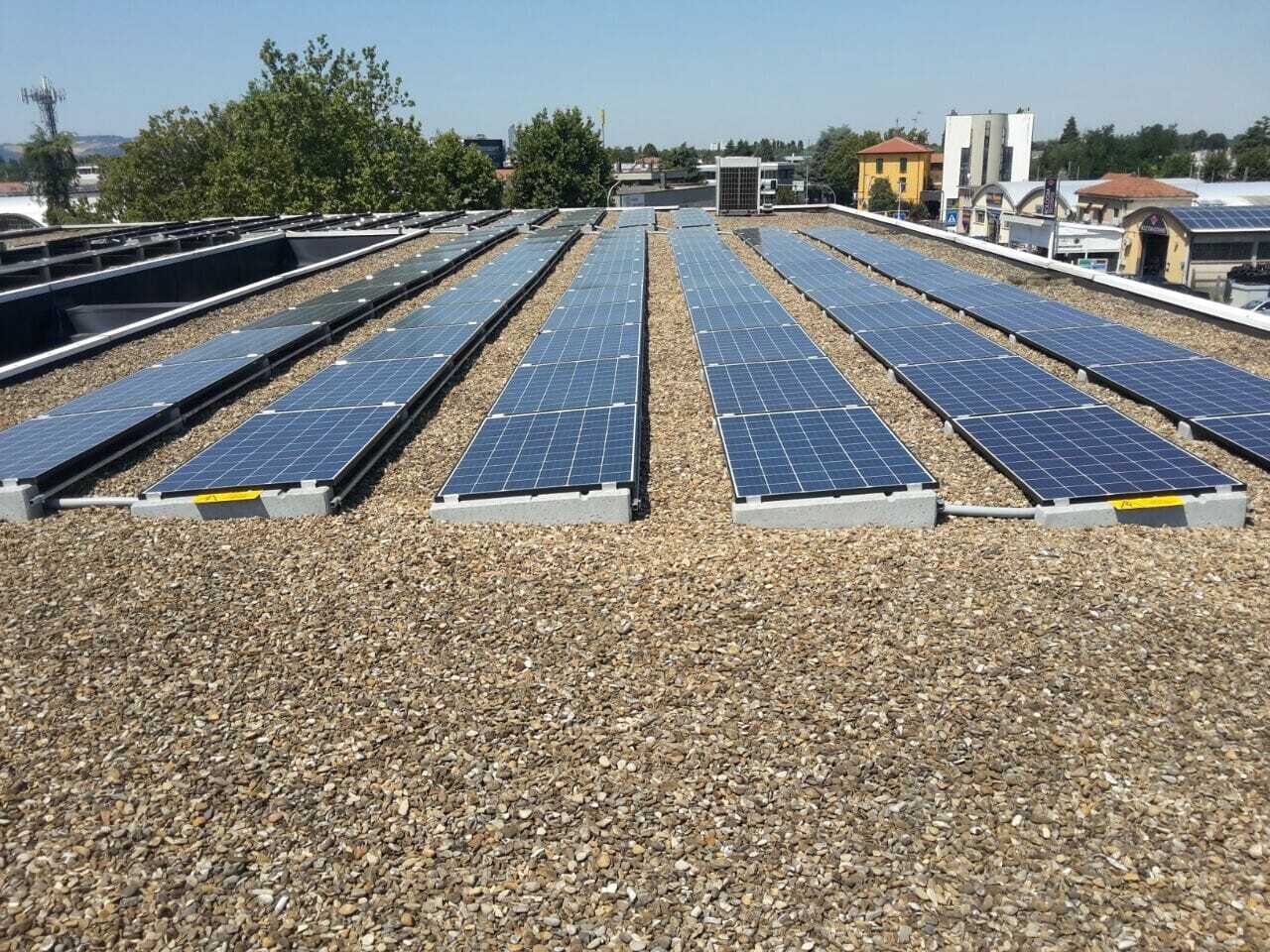 Con un inclinazione 5°, le zavorre Sun Ballast sono state utilizzate per la realizzazione di questo impianto fotovoltaico su copertura piana installato in provincia di Varese dal nostro cliente Elmec Solar. Con una potenza di 19,8 kWp queste zavorre sono state posate su della ghiaia ed avendo tanto spazio a disposizione in larghezza, si è preferito optare per una posa orizzontale.