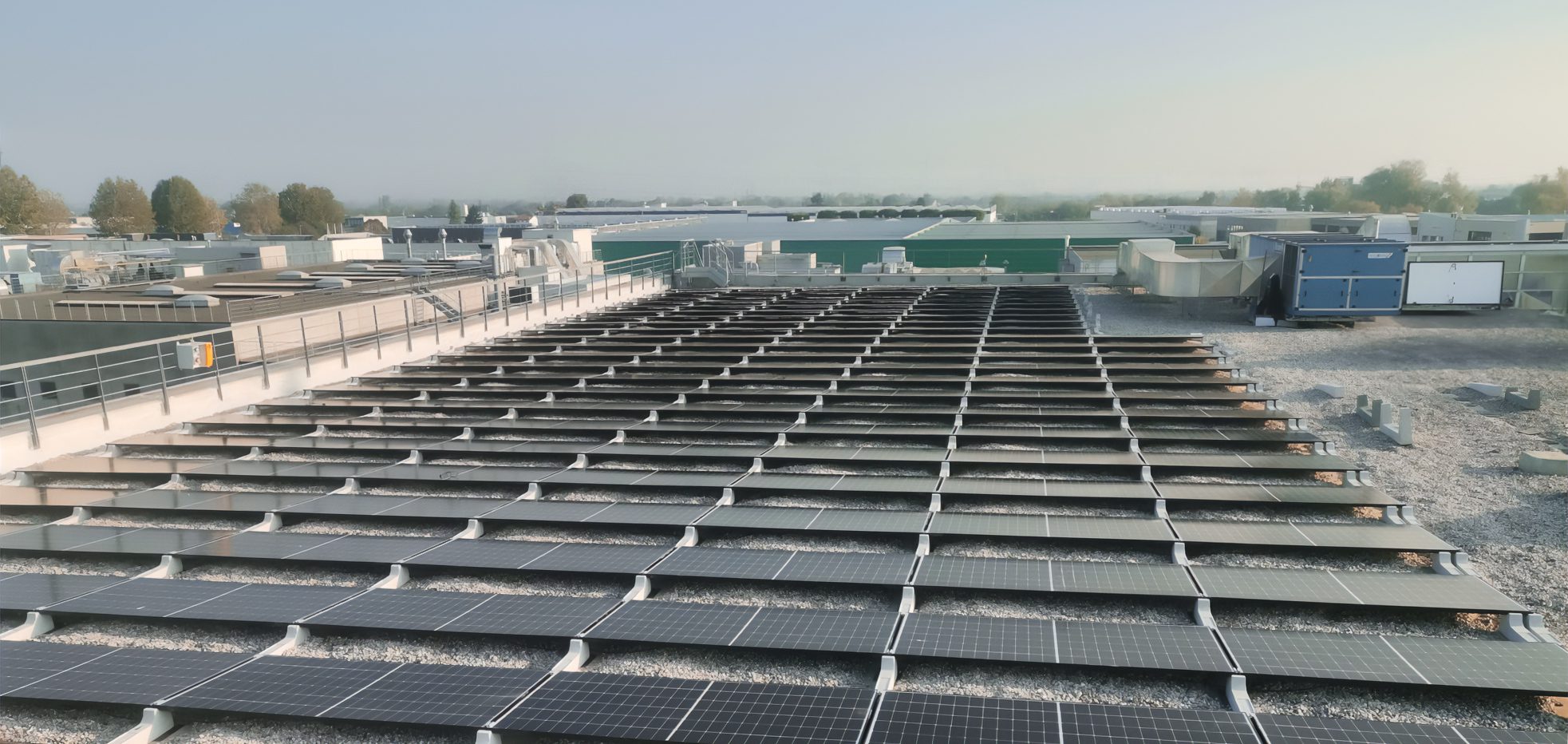 Le strutture Sun Ballast sono state sviluppate per assicurare un’installazione semplice e veloce su qualunque tipologia di superficie piana, dalle guaine alle pavimentazioni degli edifici residenziali: questo impianto è stato realizzato a Sandrigo (VI) dal nostro cliente CSVR S.r.l. e la ghiaia presente sulla copertura dello stabilimento industriale non ha affatto rappresentato un problema.